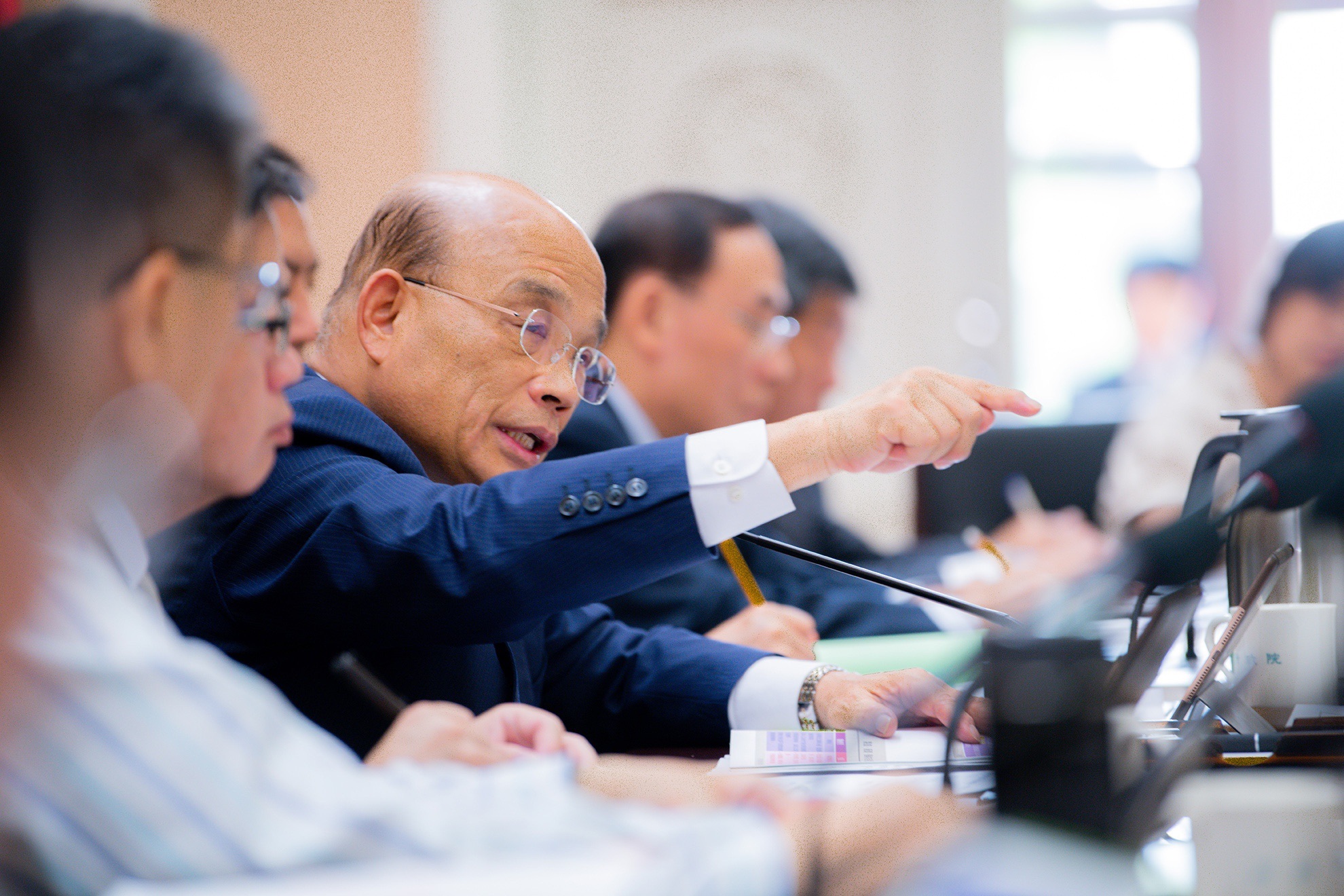 蘇院長指出,目前對於犯罪高風險、高危害場所均強力臨檢,他之前擔任縣長多年從未要求警員到八大行業站崗,強調臨檢無須大隊人馬,應建立執法者權威,機動部隊有以待之,如遇滋事則以妨害公務嚴辦、快辦及重辦,展現政府魄力,樹立執法者權威。
