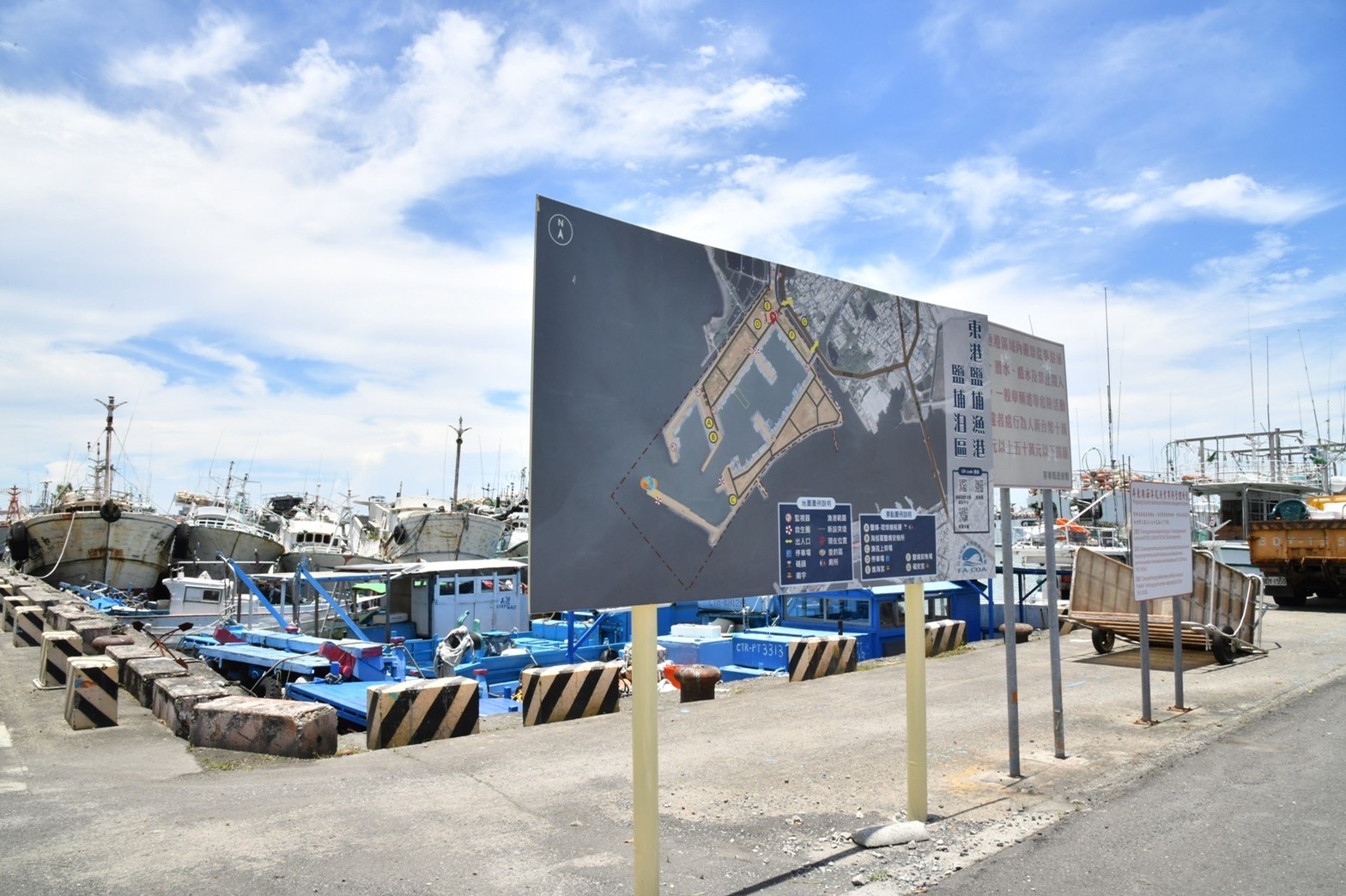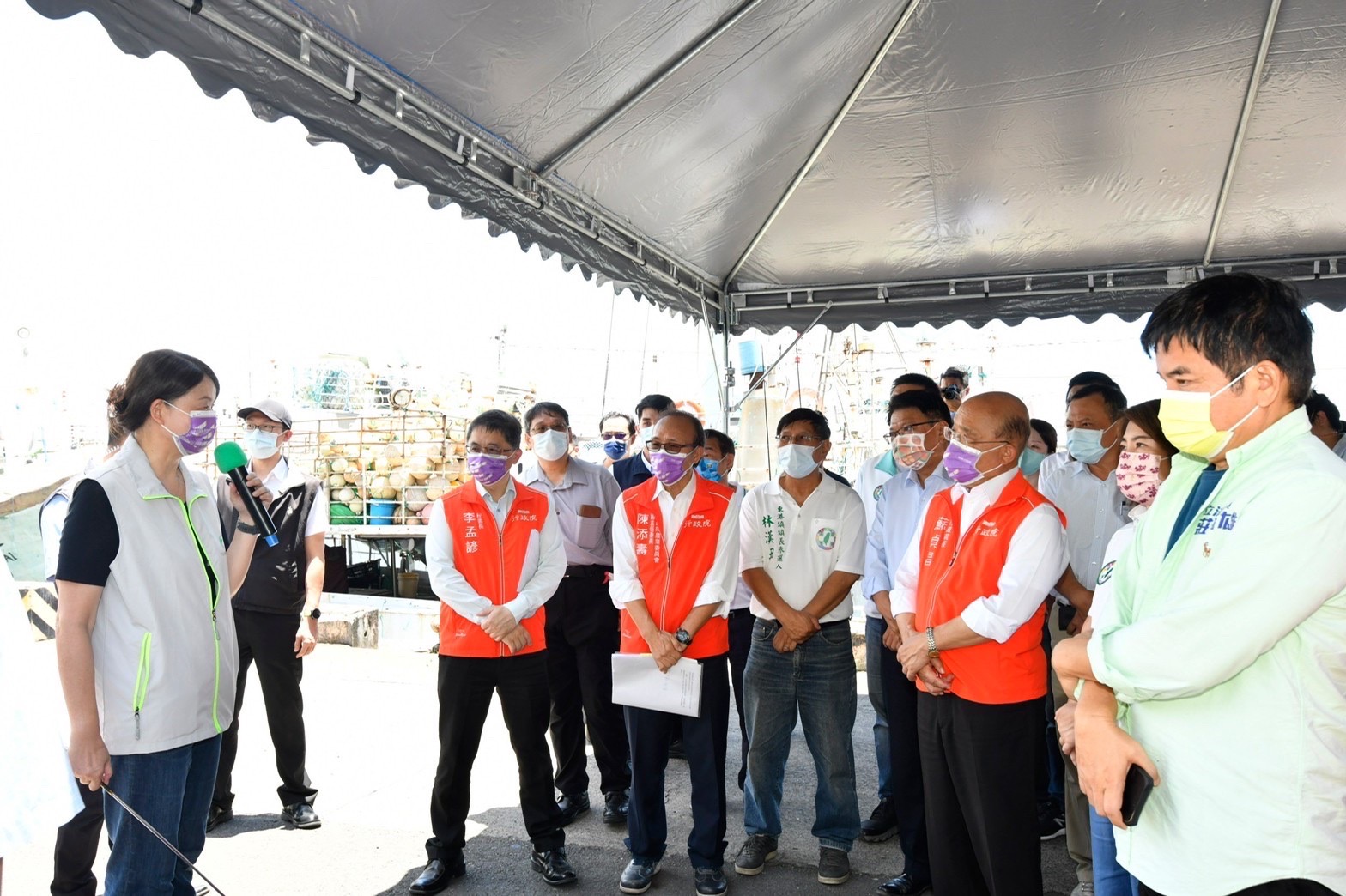致詞結束後,院長也現地視察鹽埔漁港鹽埔泊區卸魚場,實地瞭解漁船卸貨與車輛出入動線、冷鏈設置規劃等安排,並建議運用電腦模擬方式,務實做好整體規劃。