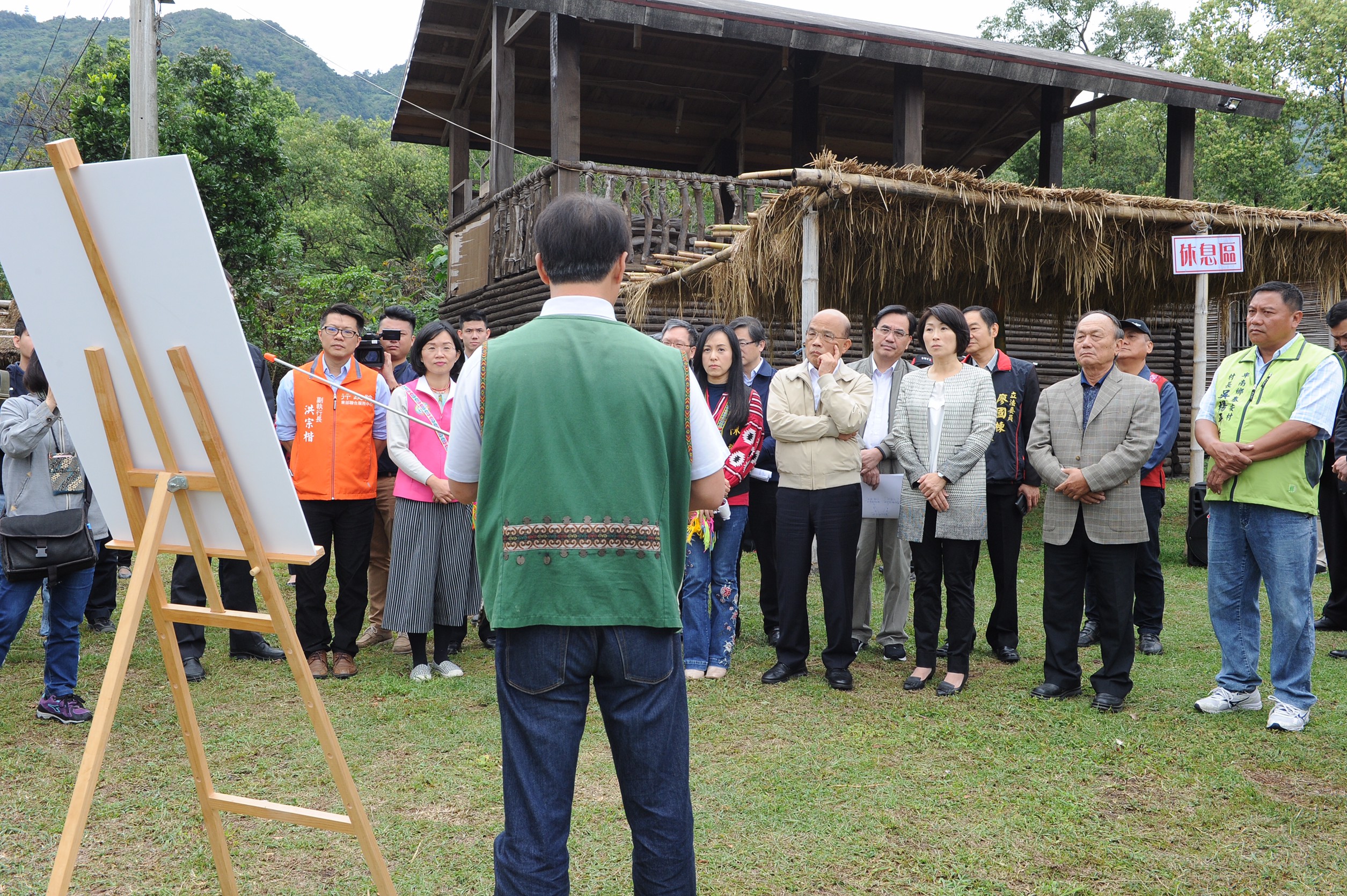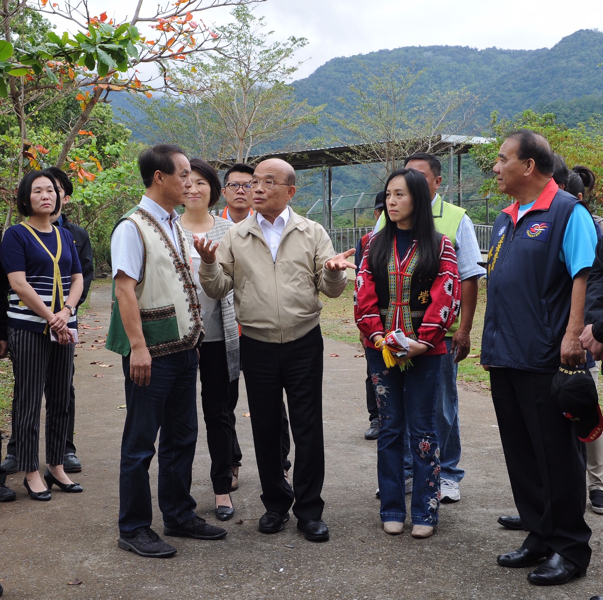 稍早,蘇院長訪視「卑南鄉大巴六九文化聚會所設施預定地」時指出,此處有漂亮的草地及樹木,未來若要建造停車場或增設機車停車格,應保留草地及樹木原貌,避免使用水泥圍起樹木或灌水泥。此外,射箭場及壘球場等場地不需拆掉重建,希望利用現有設施改善及增補。
