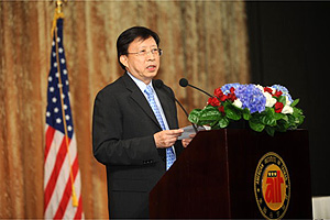 本人很榮幸今天能受邀參加美國獨立紀念日慶祝酒會,首先謹代表中華民國人民及政府,向美利堅合眾國人民及政府表達最誠摯祝賀之意,更要向在場所有美國朋友說聲:「美國生日快樂」。