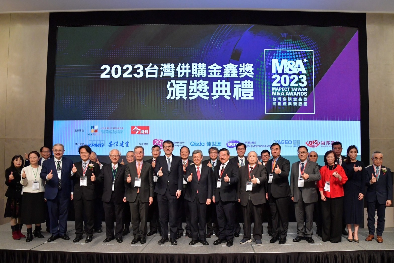 陳院長表示,很榮幸受邀參加今日「2023台灣併購金鑫獎」頒獎典禮,共同見證得獎企業透過併購厚植創新、技術實力,成為各領域的標竿典範。院長也代表政府感謝主辦單位「台灣併購與私募股權協會」長期推廣併購及私募股權觀念,並給予政府許多政策建言,使臺灣的投資環境愈來愈有活力。