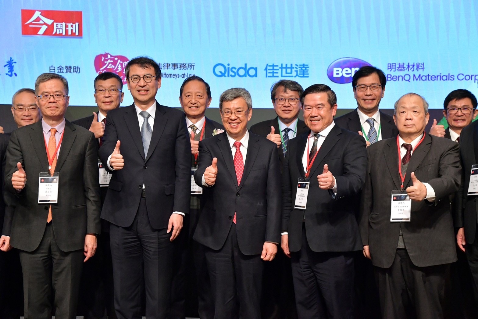 致詞結束後,陳院長與在場貴賓共同觀賞卓越成就獎得主國巨公司陳泰銘董事長得獎感言影片,隨後頒發卓越成就獎獎座予國巨公司代表陳彥松財務長,並偕同行政院林子倫發言人、今周刊梁永煌發行人、台灣併購與私募股權協會陳其宏理事長、盧明光榮譽理事長、黃齊元創會理事長、于紀隆、黃顯華、駱秉寬召集人等人合影留念。