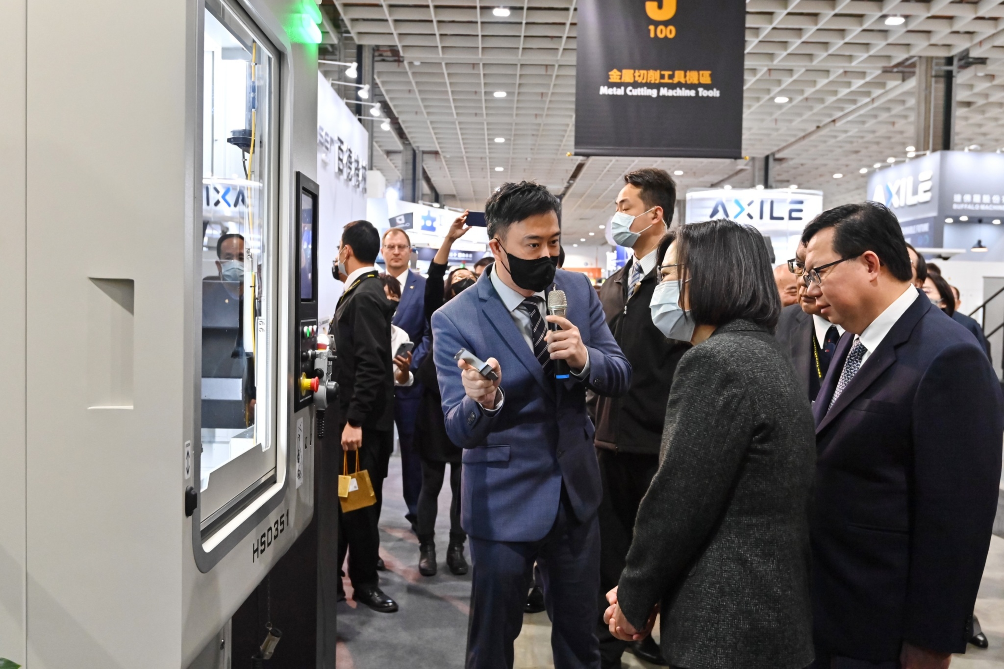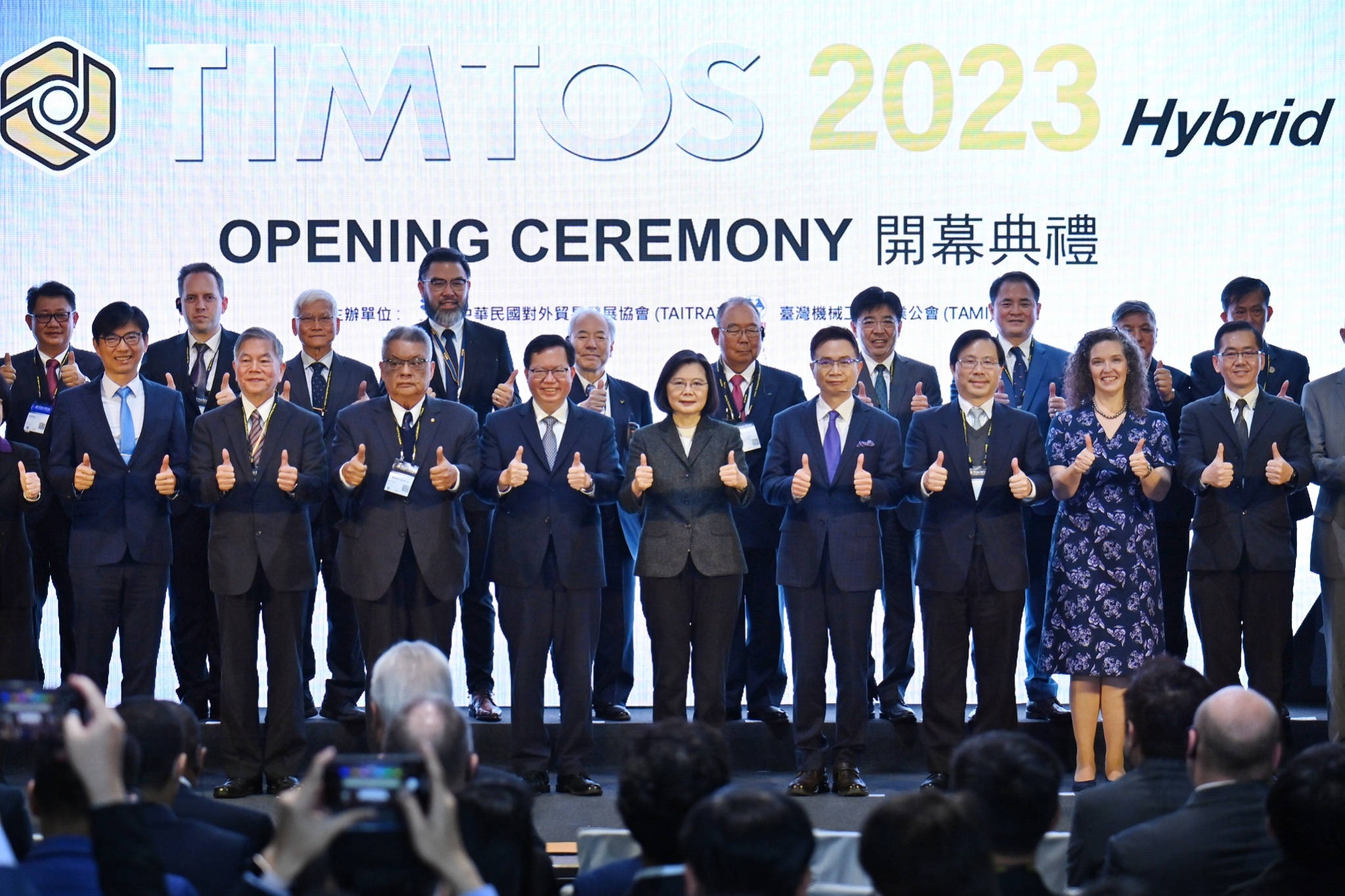 致詞結束後,鄭副院長與蔡英文總統、經濟部林全能次長、美國在台協會孫曉雅處長、外貿協會黃志芳董事長、臺灣機械工業同業公會魏燦文理事長及臺灣金融控股股份有限公司沈榮津董事長等貴賓,於舞臺上手持道具手機,在主持人倒數聲中滑動手機螢幕,後方LED螢幕隨即播放開幕動畫,為「2023年台北國際工具機展」揭幕,並一同合影留念,場面熱絡。隨後,鄭副院長與貴賓們也逐一參觀瑞士、德國、美國等3個國家館、工業技術研究院、財團法人精密機械研究發展中心,以及10家臺灣廠商參展攤位,了解海內外工具機產業現況及未來發展趨勢。