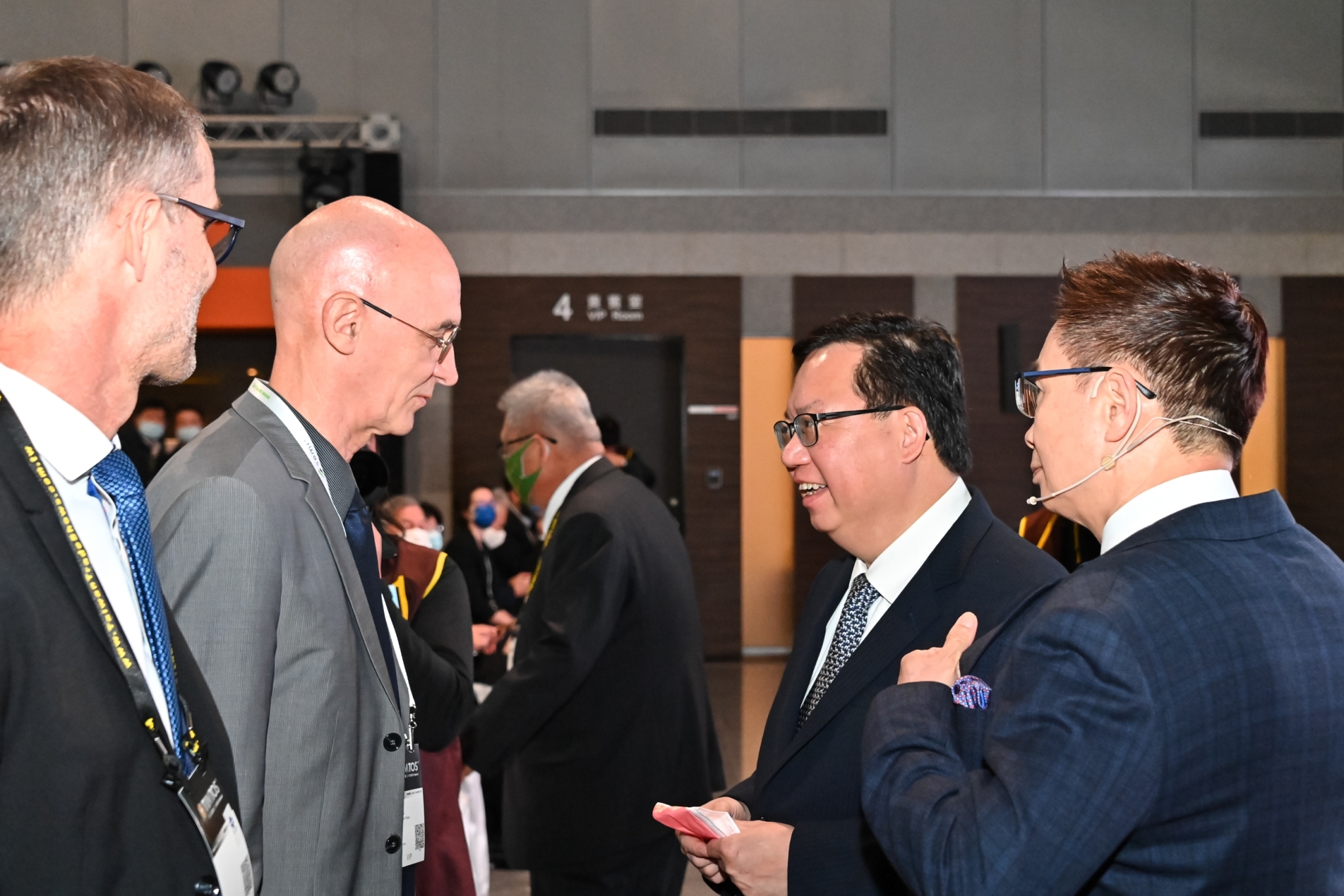 鄭副院長強調,為協助國內中小企業度過難關,並帶動產業復甦活力,政府在此次「疫後強化經濟與社會韌性及全民共享經濟成果特別預算案」中,特別編列145億元,提供中小型事業貸款融資保證與利息補貼,協助其疫後振興及朝智慧化、低碳化與營運設施改善等方向發展,貸款總額度為8千億元。鄭副院長指出,陳建仁院長上任後簽署的第一份公文,即為「淨零排放路徑112-115綱要計畫」,這項因應氣候變遷的對策計畫,包括能源轉型、低碳轉型及數位轉型等方案,也具體展現政府力求環境永續發展的決心。