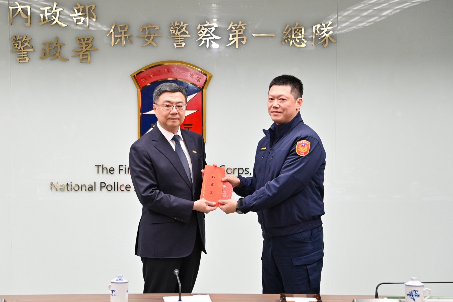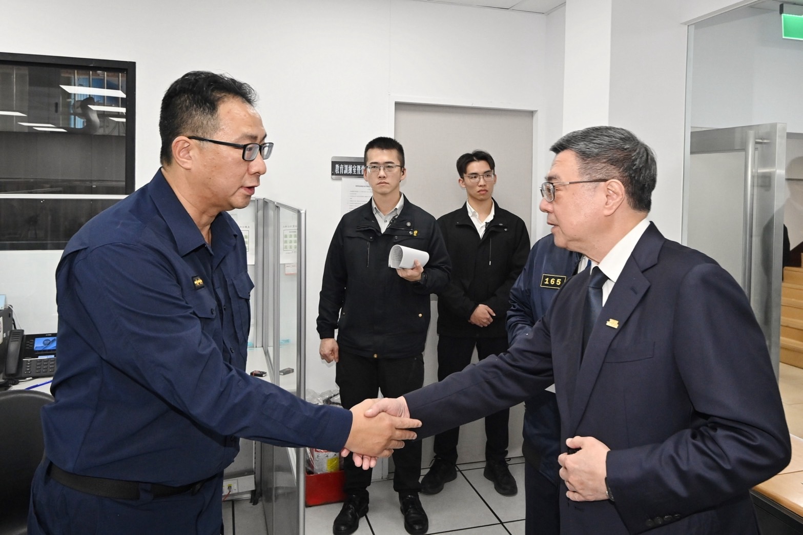 卓院長到場後,首先聽取內政部警政署刑事警察局周幼偉局長說明「刑事警察局打詐業務」簡報,了解113年打詐成果及114年重要工作;致詞結束後,院長頒發加菜金及賀歲福袋,由刑事局詐欺犯罪防制中心陳建鴻小隊長代表受領。隨後,卓院長前往165專線接案室,聽取165專線同仁蕭志謨小隊長、吳承學警員、張雁菁偵查員及張昭廷警務佐分享打詐經驗,例如設法發掘潛在被害人、防堵資通訊詐騙管道等;院長也慰勉值勤員警的辛勞,並請大家繼續加油,保護國人財產安全。最後,卓院長與行政院李慧芝發言人、內政部吳堂安次長、警政署陳永利副署長、刑事局周幼偉局長、邱紹洲副局長等人合影留念。