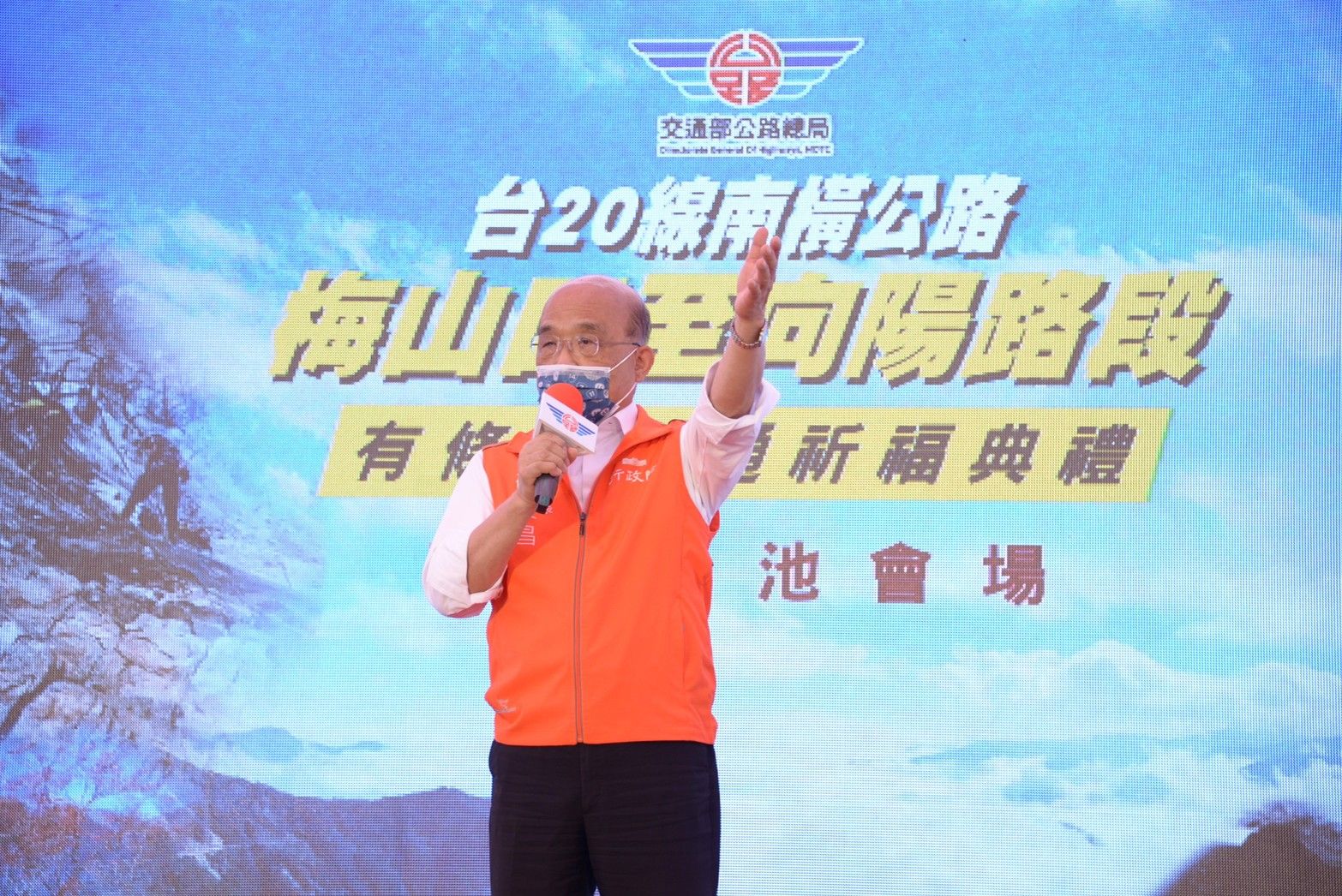 行政院長蘇貞昌今(30)日出席「台20線南橫公路梅山口至向陽路段有條件復通祈福典禮」時表示,南橫公路不僅是一條交通與產業要道,更是原住民族人回家與出外的道路,政府投入約130億元經費,歷經13年修復,終於在今日全線有條件復通,他內心充滿感動,除要向先前不幸因公殉職的工程人員致敬,亦要感謝每位工程人員不畏艱辛,付出生命、青春及努力,一寸一寸協助開通及鋪設。院長強調,他對臺灣未來始終充滿希望,因為有大家堅守崗位,並代代接續打拚,使臺灣能創造更好將來,請大家相信自己、相信臺灣,一起努力打通臺灣在世界和未來的康莊大道。