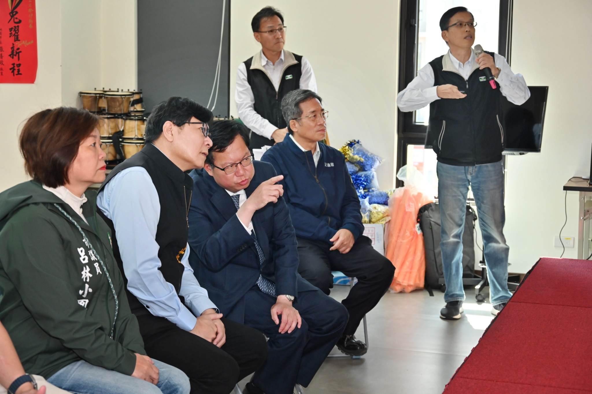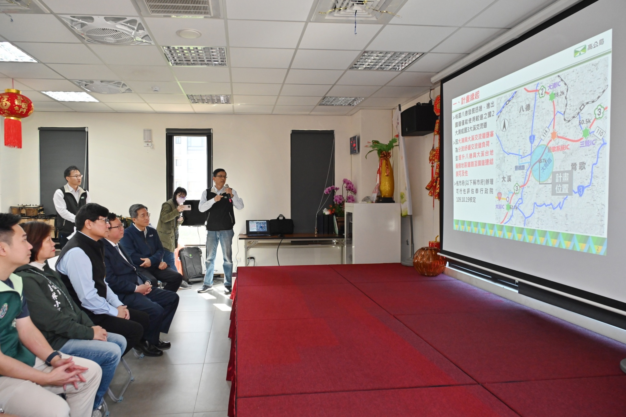鄭副院長抵達後,首先聽取交通部高公局規劃組林生發組長說明「國道3號增設桃園八德交流道工程辦理情形」簡報,以及趙興華局長針對本工程的補充說明。致詞結束後,副院長與趙興華局長、趙正宇立委、呂林小鳳市議員及許家睿市議員等人進行現地視察,了解本工程預定地及未來施工規劃。