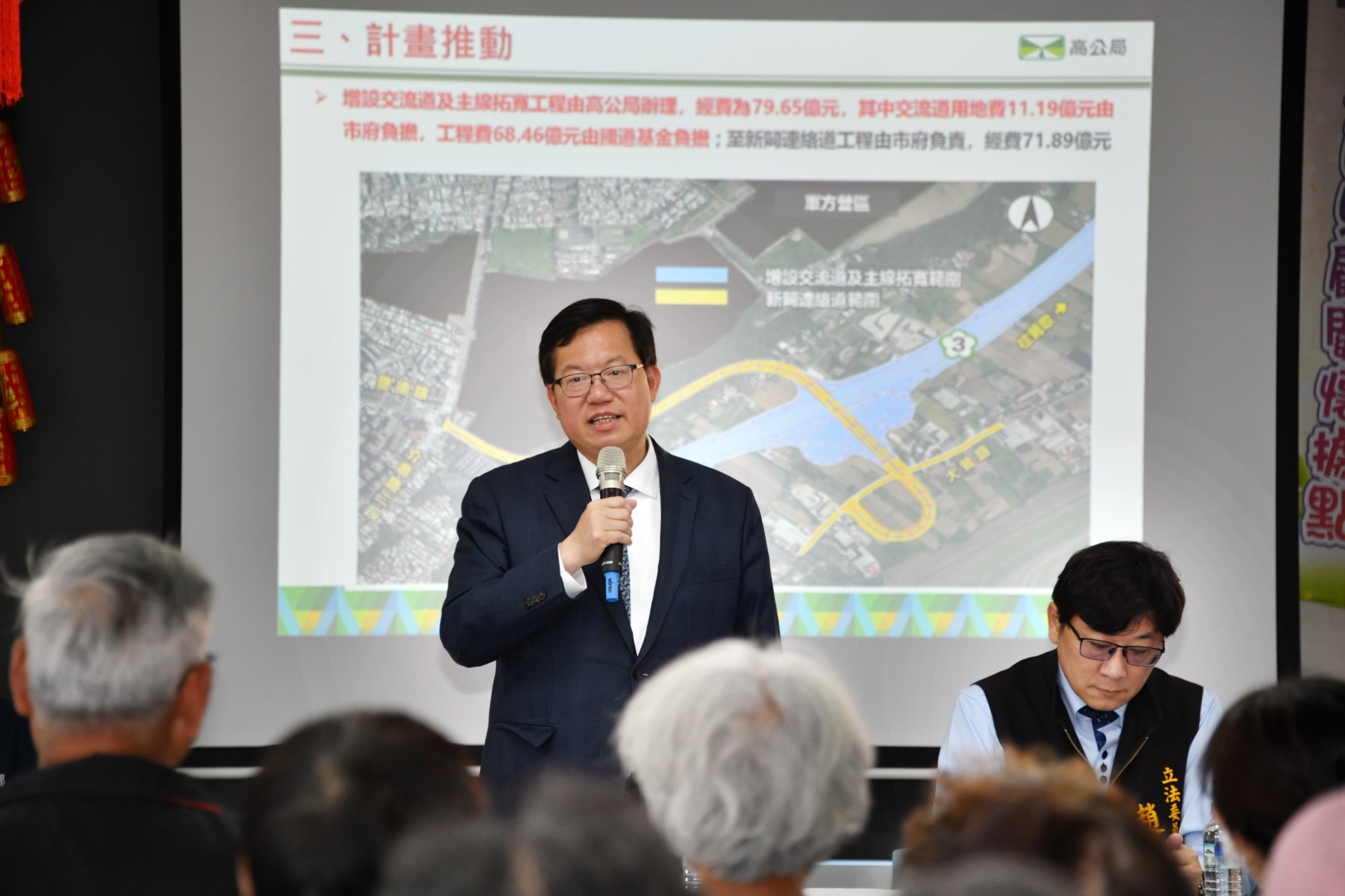 鄭副院長進一步指出,該工程建設計畫共分成「交流道及主線拓寬工程」及「連絡道工程」兩大部分,前者由交通部高公局辦理,經費為79.65億元,其中工程費68.46億元由國道基金負擔、交流道用地費11.19億元則由桃園市政府負擔。另外,從豐德路連接大鶯路的「連絡道工程」經費約71.89億元,由桃園市政府負責辦理。