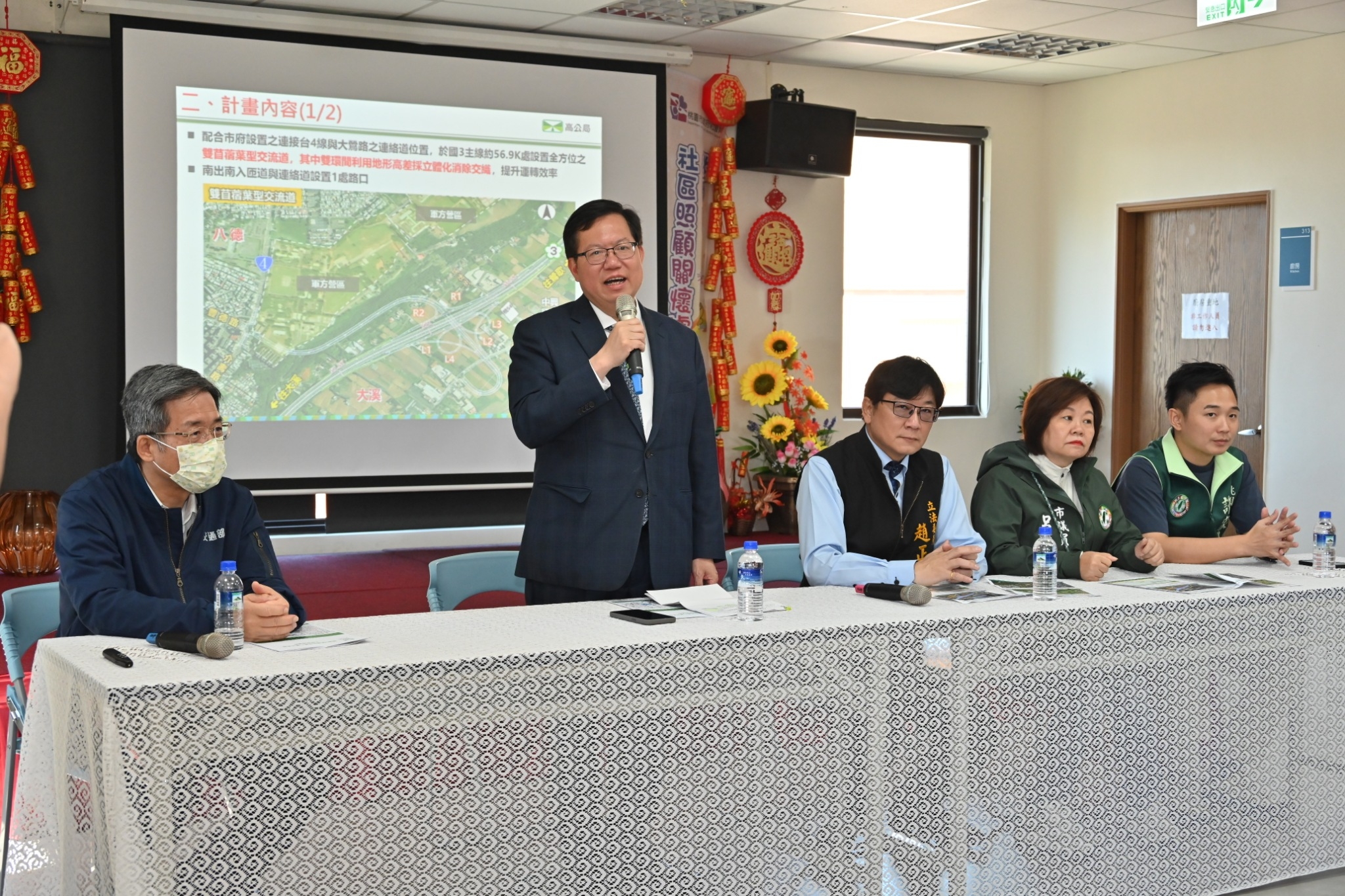 鄭副院長強調,建設計畫核定後,後續仍涉及工程設計、發包、農業用地變更及用地取得等作業,交通部高公局在計畫核定後3個月內會提供路權圖予桃園市政府,後續將配合市府作業期程辦理用地取得事宜。副院長請桃園市府協助編列用地取得預算及加速相關作業,同時也請高公局加速細部設計及招標期程,希望透過大家一起努力,早日完成用地取得、招標動工。副院長也感謝在場趙正宇立委、呂林小鳳市議員、許家睿市議員等人對於該工程的支持與用心。