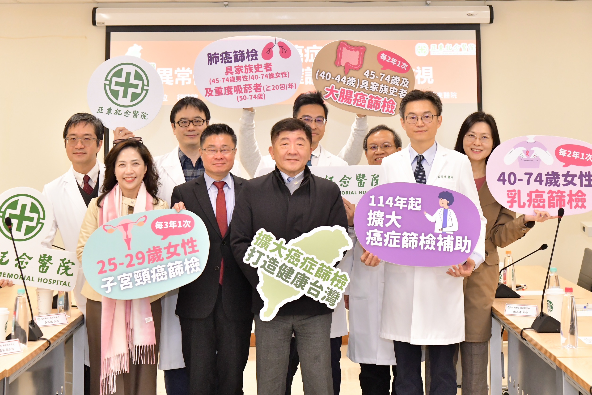 行政院政務委員陳時中今(15)日前往亞東紀念醫院訪視「健康台灣-擴大國家癌症篩檢及異常個案追蹤」辦理成果,並肯定亞東紀念醫院在COVID-19疫情期間,組成堅實醫療團隊,照顧染疫病患。另也透過「整合式預防保健服務中心」提供一站式服務,提升民眾健康福祉。陳政委強調,為落實總統「健康臺灣」政見所提「癌症治療三箭」,衛生福利部已積極推動「提升早期癌症篩檢」、「聚焦基因檢測與精準醫療」及「建立百億癌症新藥基金」,如再輔以「增加心理健康支持」第四枝箭,相信將能更有效推動癌症防治工作。