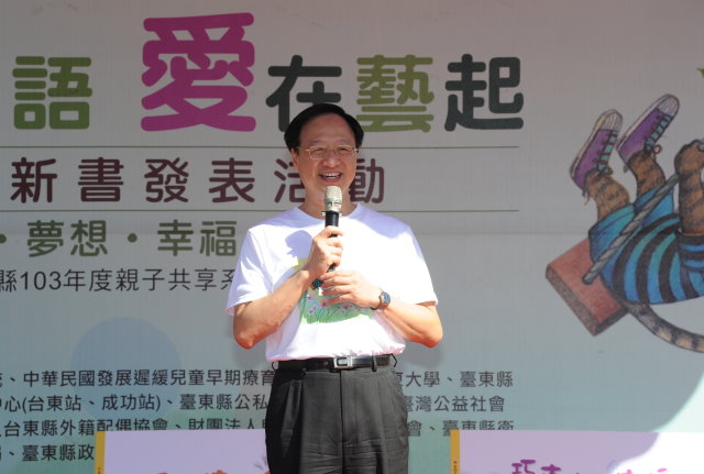 行政院長江宜樺今(2)日上午偕同夫人李淑珍女士出席臺東縣政府舉辦的親子共享系列活動「童顏童語‧愛在藝起」繪本新書發表會時,對縣府提供遭受家庭暴力者的服務措施,以及指導家長育兒知識所設置的托育資源中心,表示高度肯定。由於每年仍有1萬6,000位兒童被通報受虐,需要緊急協助,江院長也期許全民發揮愛心,加入通報行列,撥打113全國保護專線,當兒童的保護天使,即時提供救援協助。