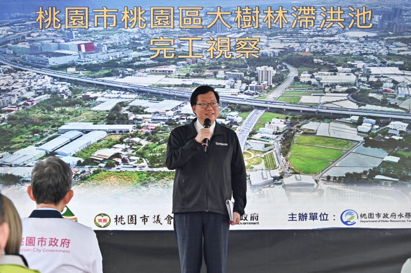 鄭副院長致詞時指出,他於1998年擔任議員時,因上水下流,導致中壢、八德及桃園三地區淹水,因此,前總統陳水扁編列8年800億元辦理易淹水地區的治理計畫,後來又追加250億元;到前總統馬英九時代,推動6年流域綜合治理計畫,到了蔡英文總統,則辦理更大規模的前瞻基礎建設計畫,一棒接一棒,擘劃防洪治水、穩定供水,強化國土安全並打造韌性臺灣優質水環境。