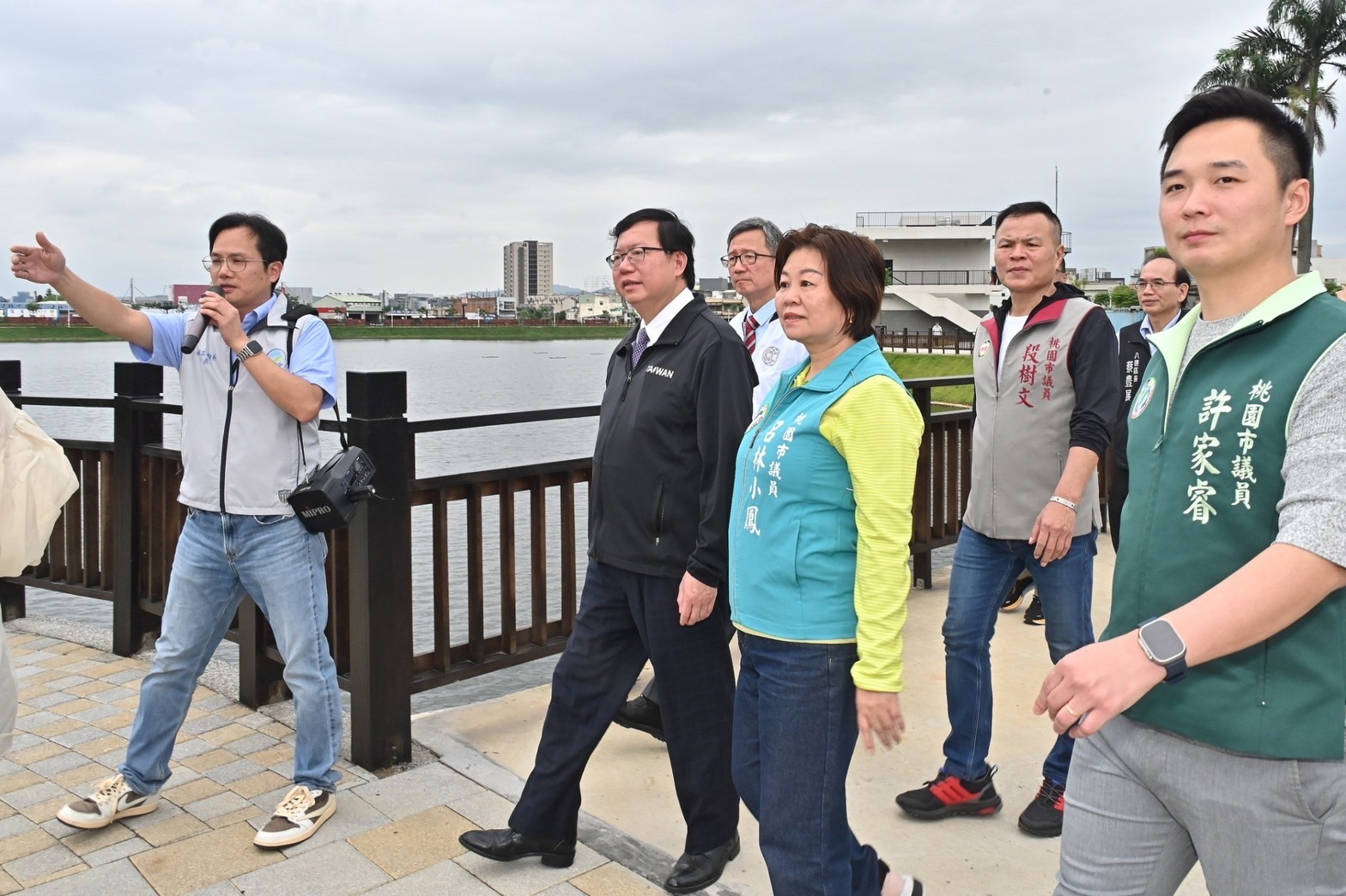 氣候變遷挑戰日益加劇,行政院副院長鄭文燦今(14)日分別前往桃園市桃園區及八德區視察「大樹林滯洪池」及「大湳滯洪池」前瞻建設成果,鄭副院長肯定內政部國土署及桃園市政府團隊兩項工程如質完工啟用,除有效改善周邊區域淹水問題,亦提供民眾水資源教育及運動休閒之多元活動空間,達成防洪、減災、遊憩三大功能。