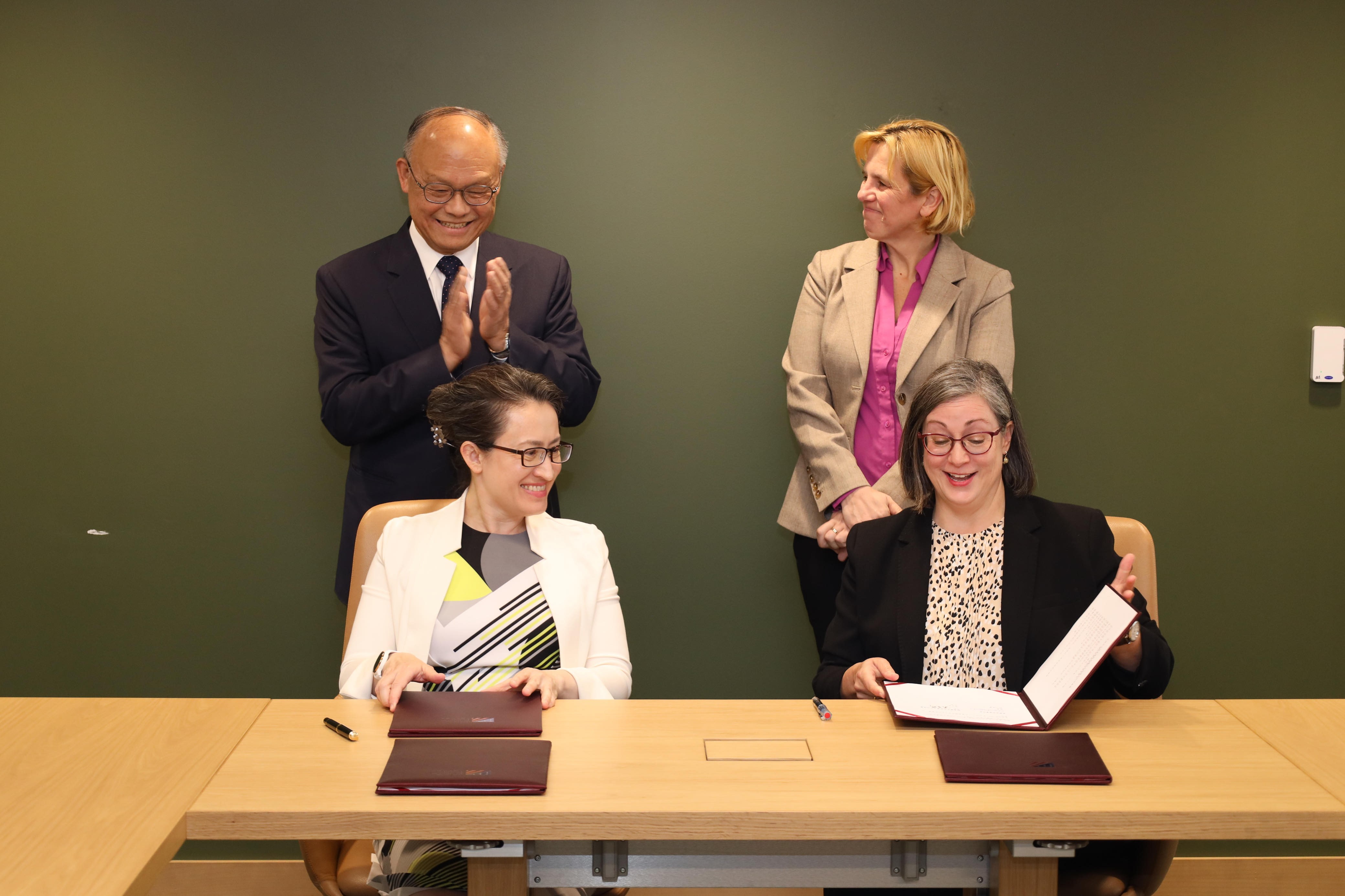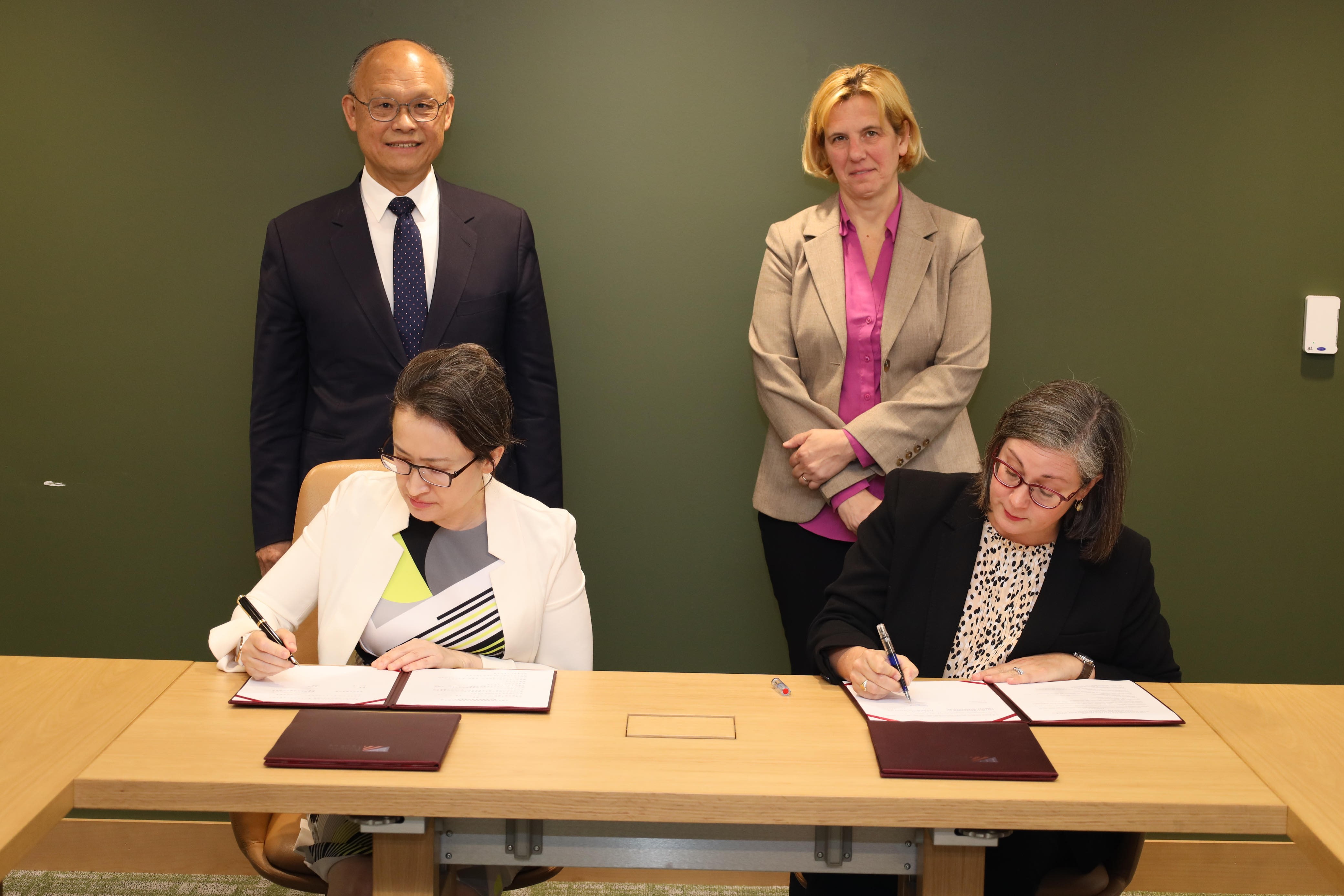 「台美21世紀貿易倡議」首批協定本(6月1)日於華府美國在台協會(AIT)總部由我駐美代表蕭美琴大使與AIT執行理事藍鶯(Ingrid Larson)代表雙方簽署,行政院鄧振中政務委員、美國副貿易代表Sarah Bianchi大使及美國在台協會理事主席羅森柏格(Laura Rosenberger)在場見證。