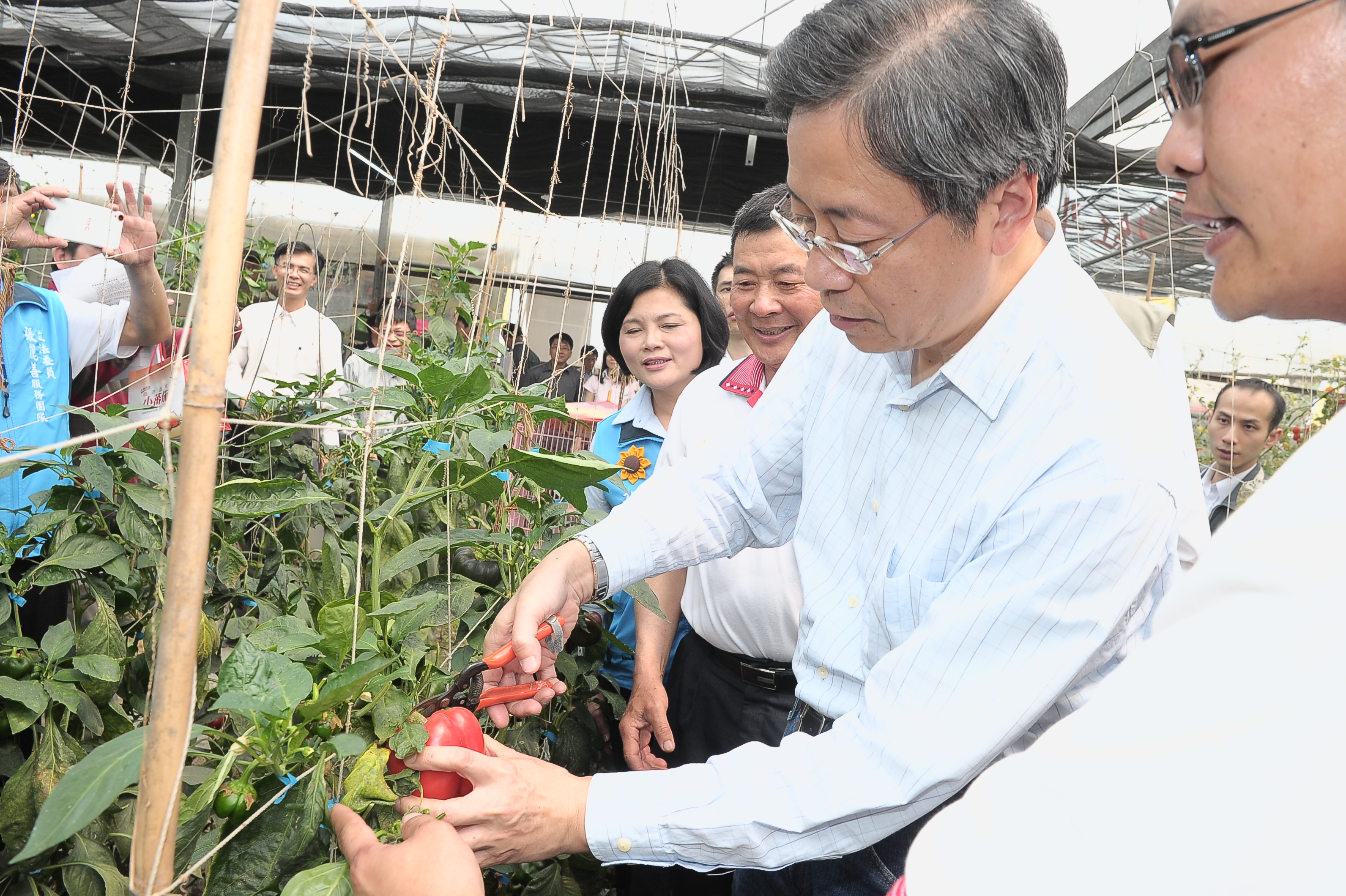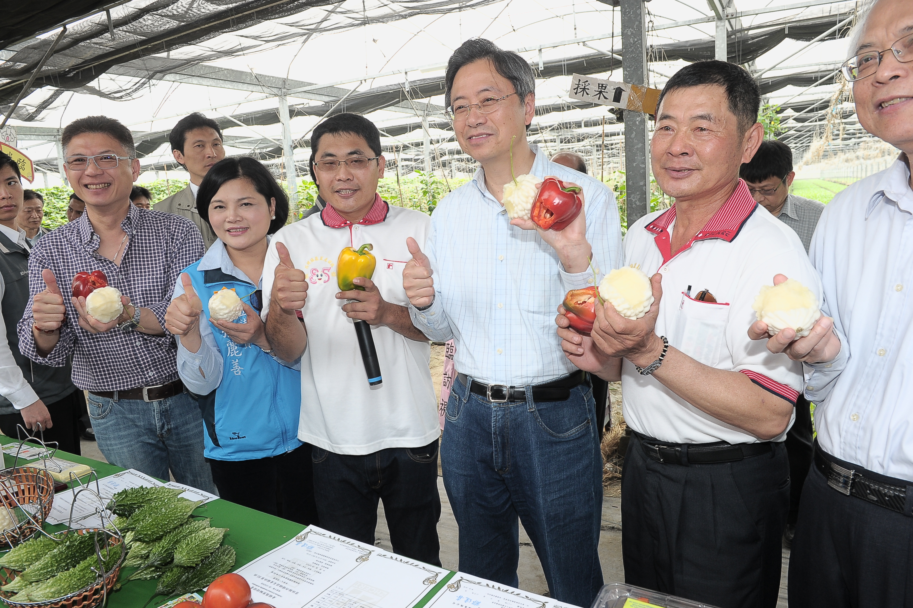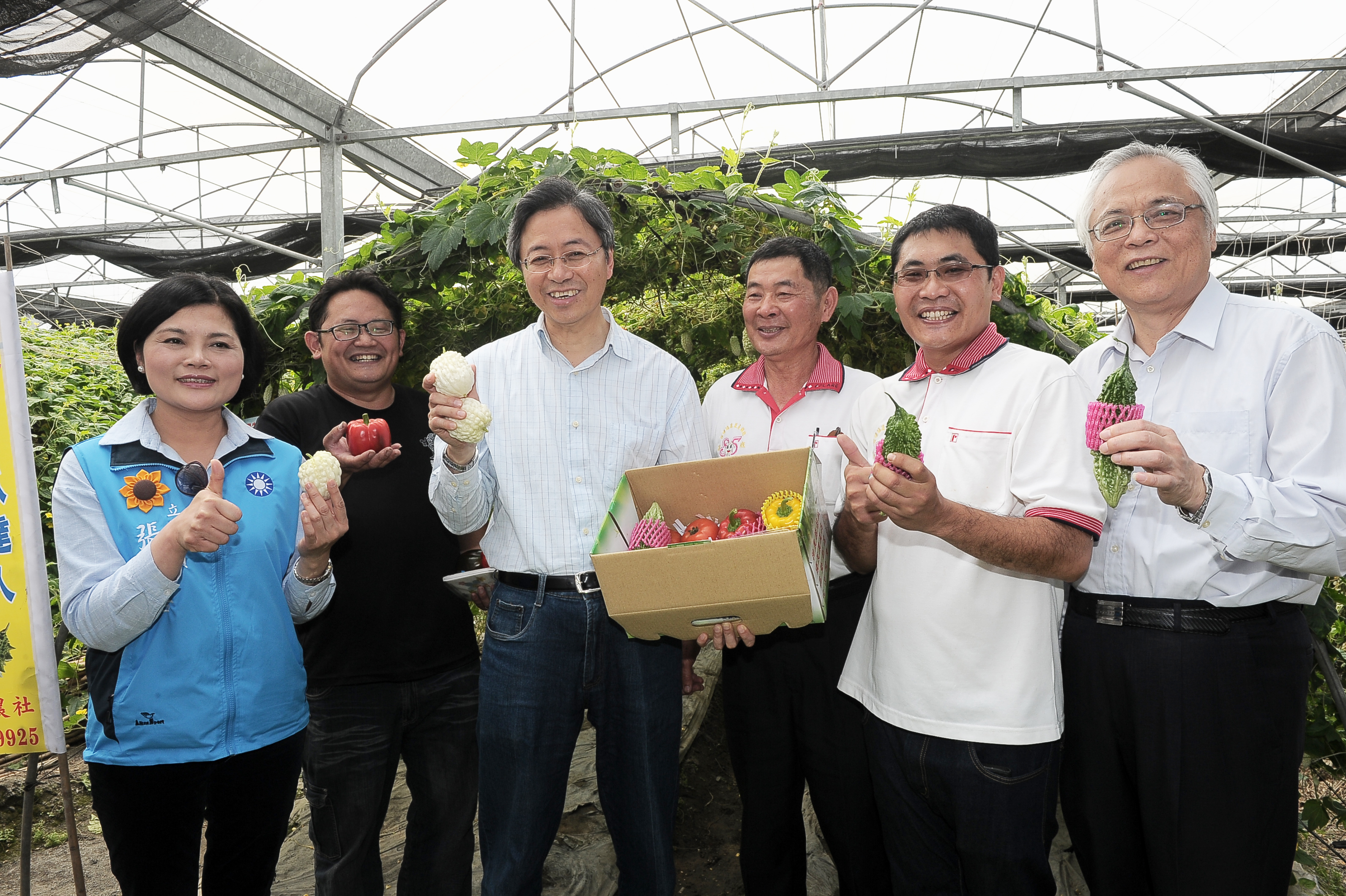 隨後,張院長下田採收青椒與苦瓜,並且向青年農民購買綜合蔬菜禮盒。