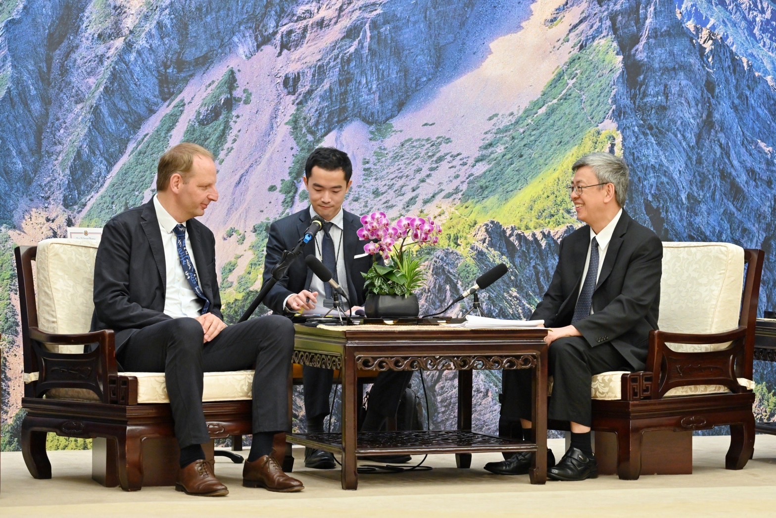 陳院長強調,臺灣處在抵禦威權擴張的前線,與德國同享自由、民主、人權等普世價值,臺灣具有豐富經驗及充分資源,可協助德方建立對中國威脅的完整認識。今日臺灣的民主與自由也曾受到許多民主夥伴的支持,衷心期盼臺德在現有基礎上持續加強合作,進一步擴大、厚植雙方間互惠雙贏、永續友好的合作關係。