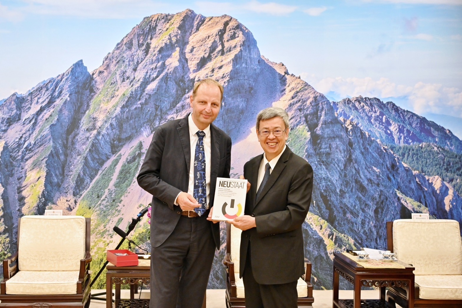 隨後海爾曼議員致詞時表示,他感謝此行訪臺受到熱烈歡迎與接待,並提及臺灣中央研究院與德國科研機構具有相似歷史背景,他對於此行訪團與中研院的交流與討論,留下深刻印象。另此行訪團也拜會數位發展部唐鳳部長,他於2019年曾與唐部長在德國長談,當時唐部長給予他許多啟發,並呈現在他的著作《NEUSTAAT》一書當中,今日他特別將此書致贈給院長。他並說,臺灣在數位化方面擁有許多值得借鏡之處,他非常期待與臺灣擁有更多交流。