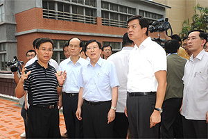 為瞭解目前國中小及高中職危險老舊校舍的改建情形,行政院長劉兆玄今(28)日視察臺北縣金山國小時表示,老舊校舍補強及拆除重建,不僅是建築工作的完成,更要注重提升品質,達到綠色建築及節能減碳的目標。劉院長於視察後並提出4點要求:1.該做的事一次做好。2.專業鑑定、中央支援、地方負責及學校參與。3.強化效率、加強管考。4.綠色建築、節能減碳,以建造優質教育環境,加上教育愛心,為我們未來的國家主人翁盡分心力。