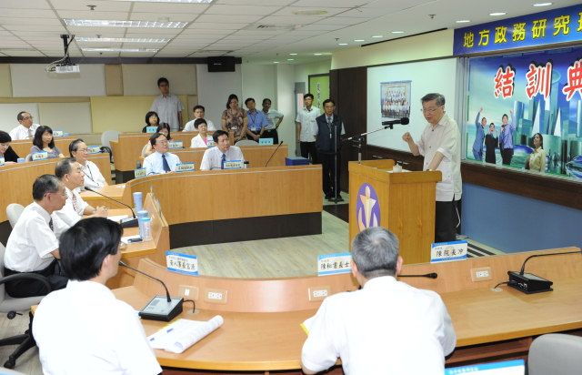 陳院長指出台灣人才豐富,但需要隨著社會變遷與工作崗位的轉換,持續努力培養專業與訓練技能,這就是一種人才加值的方式,而地方政務研究班就提供這樣寶貴的課程訓練,讓各地菁英來這裡進行經驗交流,回到工作崗位後便可提升服務品質,貢獻社會國家。