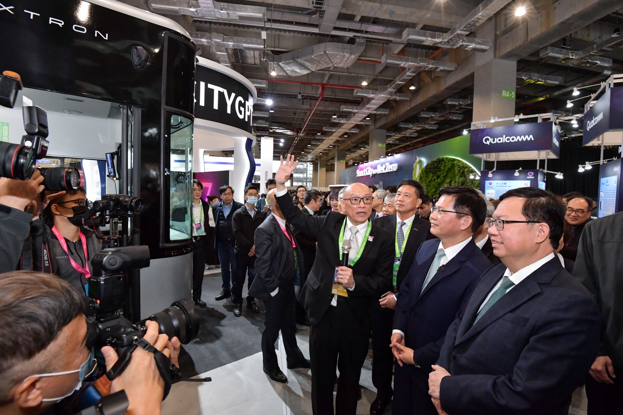 鄭副院長表示,「智慧城市展」自2014年開辦以來,迄今已十年有成,與台北國際電腦展同為臺北兩大展會,而今年展覽也與「2050淨零城市展」聯合舉辦,並於臺北及高雄展區接續展出,可謂數位與綠色雙軸轉型的匯聚點。