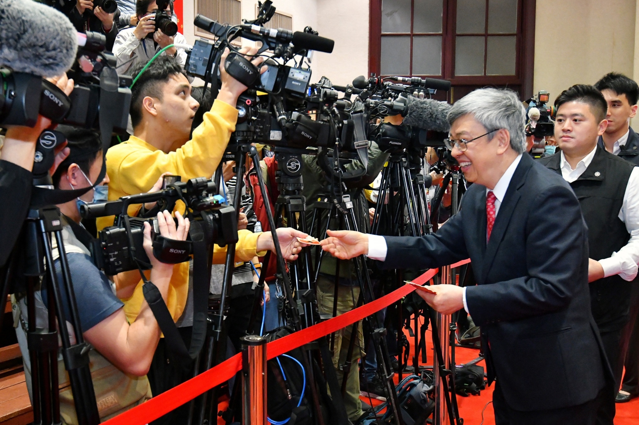 陳院長指出,第16任總統副總統及第11屆立法委員選舉已於今年1月13日和諧圓滿完成,選舉結果也被國際盛讚是民主國家的典範。院長表示,新的一年開始內閣團隊依舊會展現最大的決心與熱忱,每一天都會做好福國利民工作,戰戰兢兢地照顧國人的日常大小事,也期盼未來臺灣朝野團結一致,讓國家穩健向前邁進,打造更溫暖強韌、富強康樂、幸福美滿的臺灣。