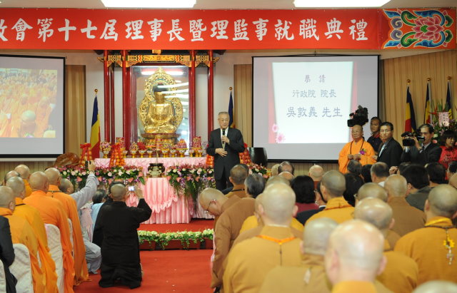 吳院長今日出席中國佛教會新舊任理事長交接暨第十七屆理監事就職典禮時作以上表示。他並稱許前任理事長淨良長老的貢獻,同時對新任的理事長圓宗長老表達祝賀,期許未來在任期內有更大的成就。
