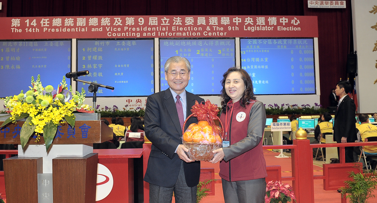 毛院長進一步表示,有些同仁籌備選務工作已長達數月,特別感謝中央選舉委員會、全國所有參與選務的工作同仁,檢、警、調工作同仁,以及協助電腦計票的中華電信同仁。毛院長向所有參與選務工作的同仁表達感謝、肯定與慰勉之意,並致贈水果慰勉辛勞。