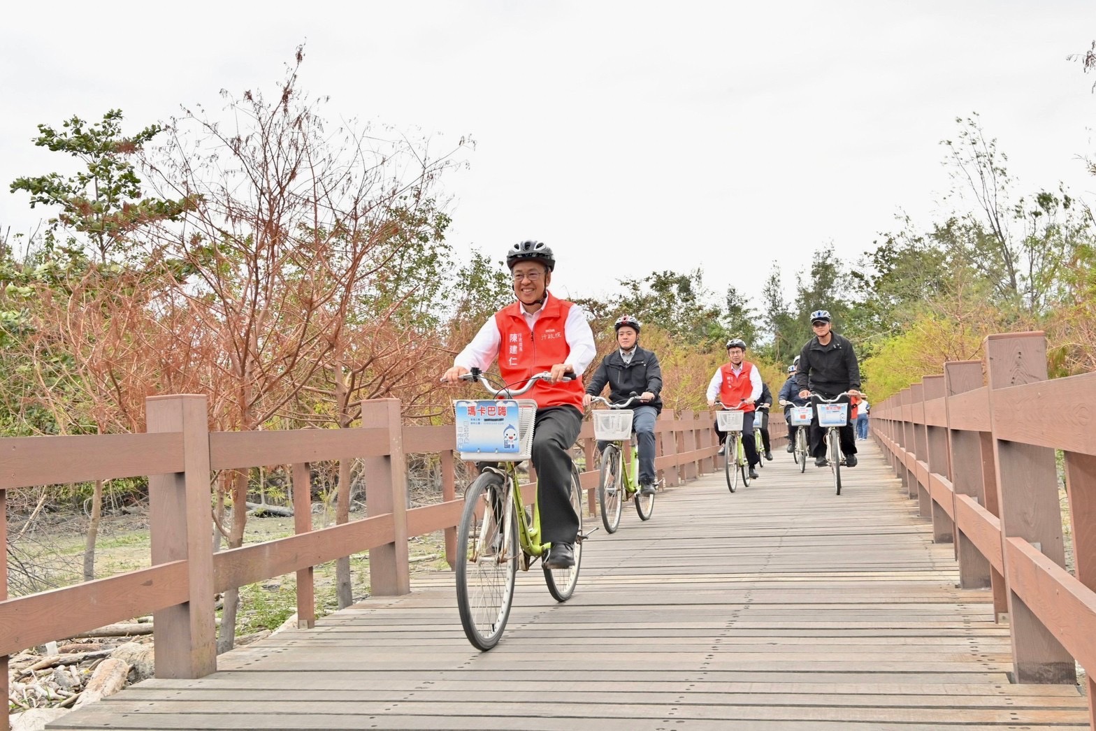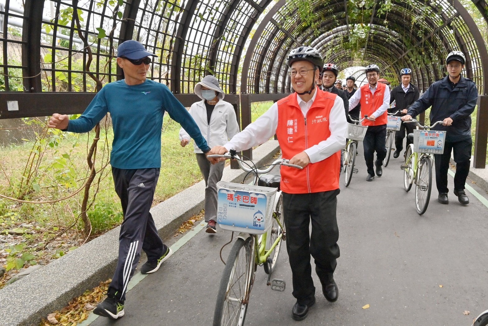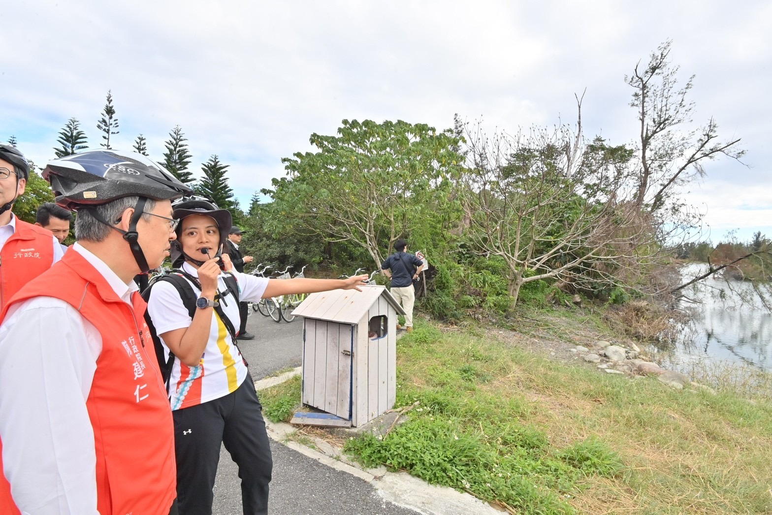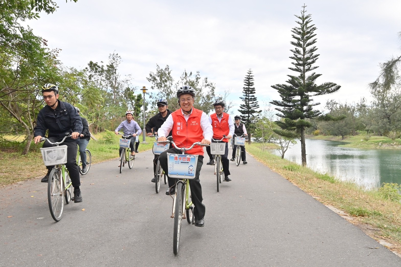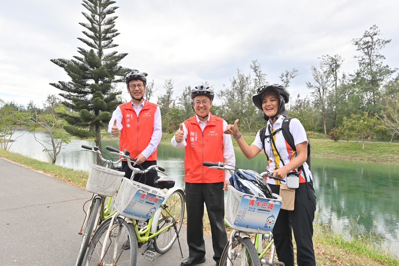隨後,陳院長前往臺東森林公園,體驗自行車騎乘,沿途經過賞鳥小屋、木橋、中繼觀景臺等觀光設施,並與許多遊客親切寒暄問候;一行人也在琵琶湖觀景臺聽取交通部觀光署東部海岸國家風景區管理處楊凱琳技士說明臺東森林公園自然景觀風貌,遼闊的園區擁有河口海濱溼地、廣大草地與茂盛森林等多樣景觀,吸引許多民眾親子共遊,倘佯於大自然的秀麗美景之中,其中琵琶湖清澈見底、鷺鷥湖棲息許多水鳥,兩座湖泊皆為卑南溪口溼地的一部分,是重要的國家濕地;園區還有人工開鑿的活水湖,在完善規劃下成為安全的游泳環境,時常舉辦鐵人三項全國比賽及龍舟賽事等;此外,上週末(11月18至19日)也在臺東森林公園舉辦「PASIWALI原住民族國際音樂節」活動,帶動地方觀光產業發展。