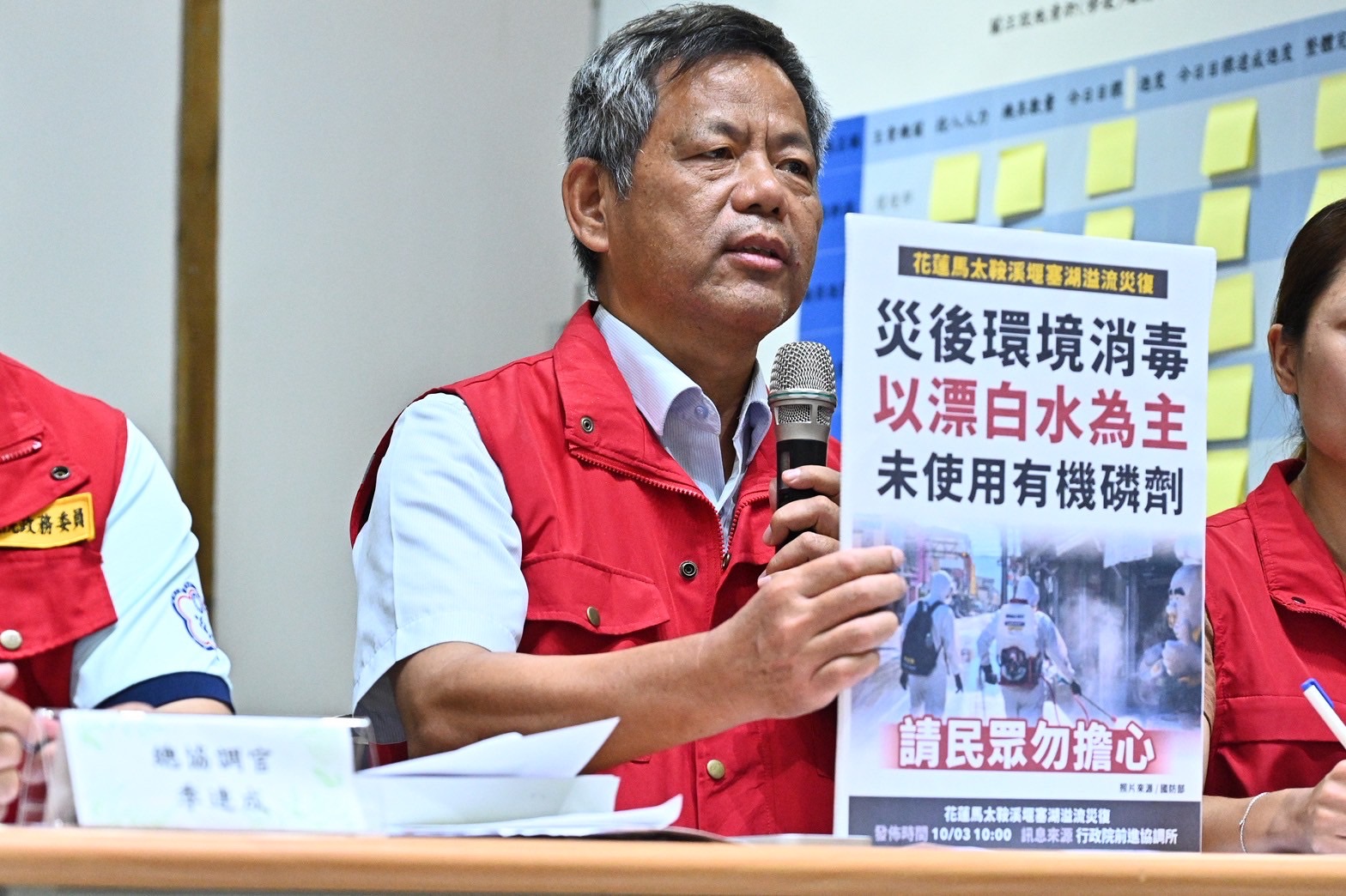包括前進協調所副總協調官行政院李孟諺顧問、環境部環境管理署顏旭明署長、經濟部水利署林元鵬署長、農業部林業及自然保育署花蓮分署黃群策分署長、交通部公路局東區養護工程分局莊世政科長、國防部陸軍花東防衛指揮部賴政豐少將副指揮官、花蓮縣政府農業處陳淑雯處長等人均出席今日記者會。