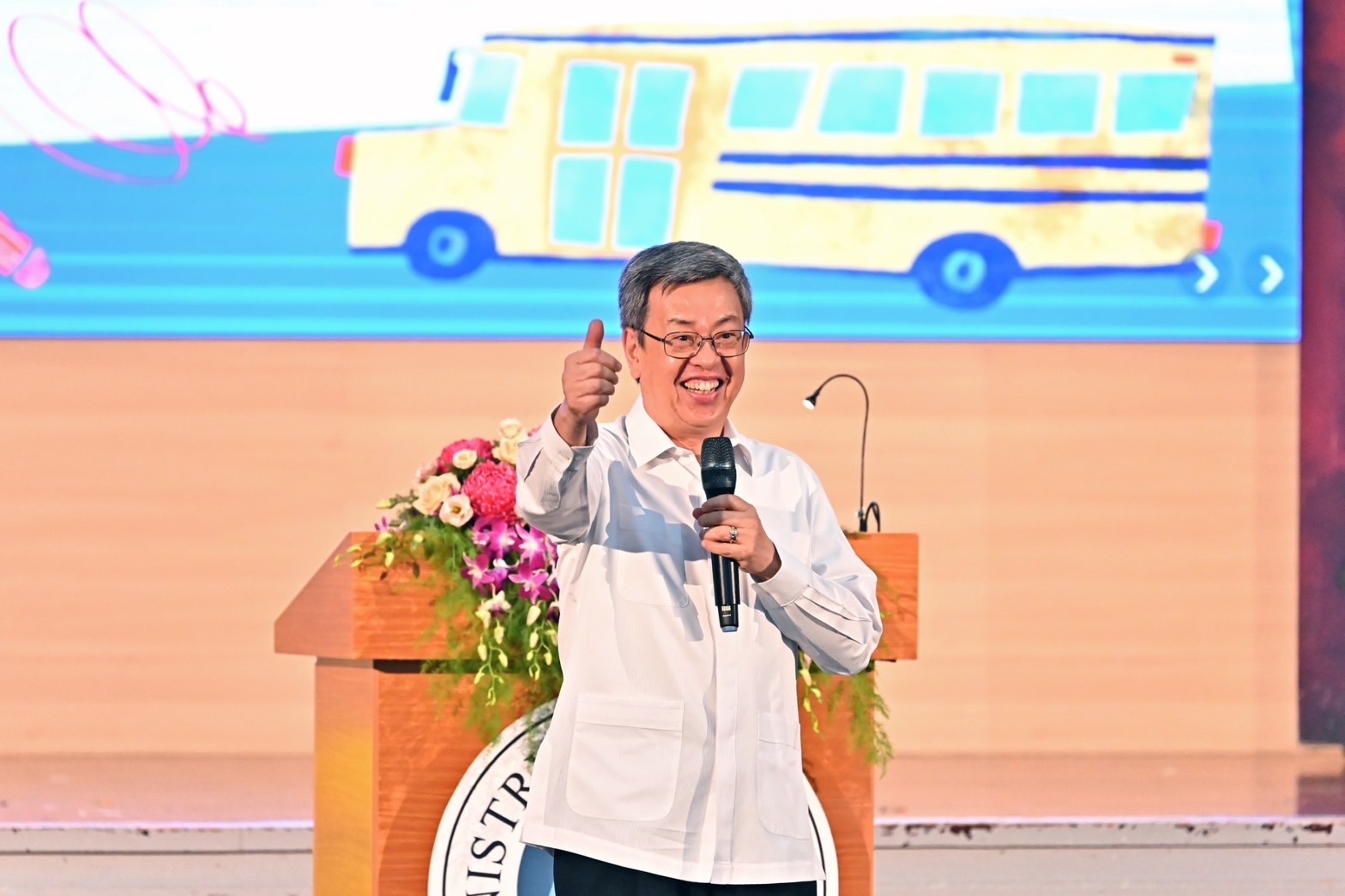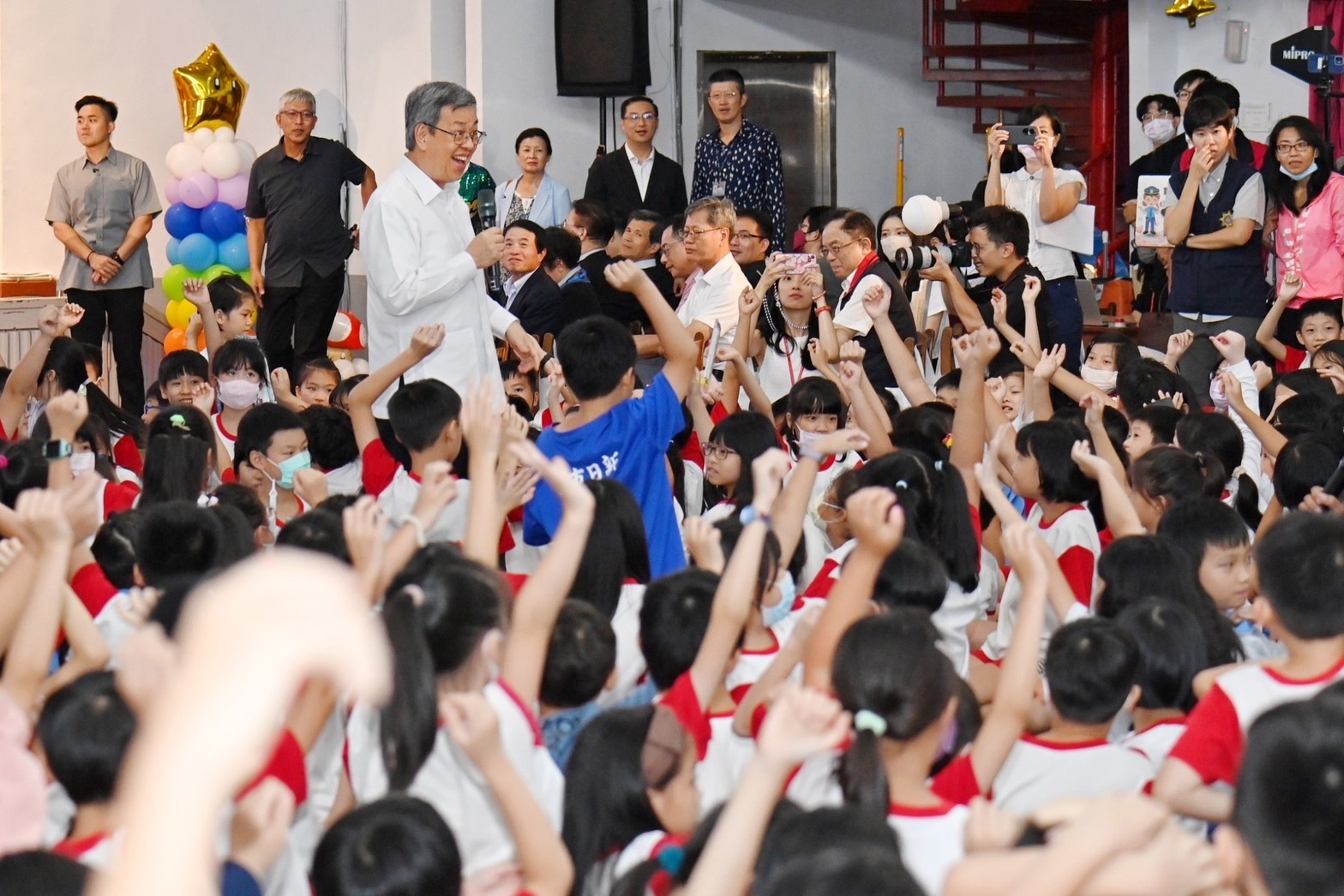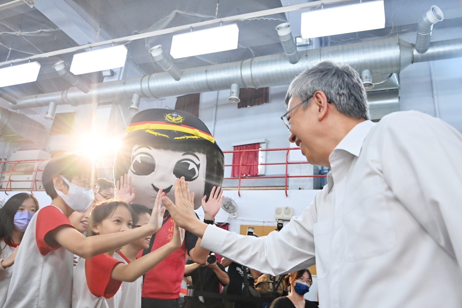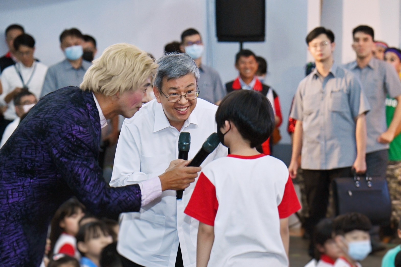 行政院長陳建仁今(31)日前往臺北市日新國小,出席112學年度第1學期友善校園週「校園詐騙防制-你平安我快樂」記者會,與現場學生及貴賓一同觀賞紙風車劇團的防詐反毒舞臺劇表演。院長並化身為教師,邀請學生分享周遭親友遭受詐騙的經歷,以活潑問答方式,向學生宣導詐騙防制觀念,盼能提高學生防詐意識。