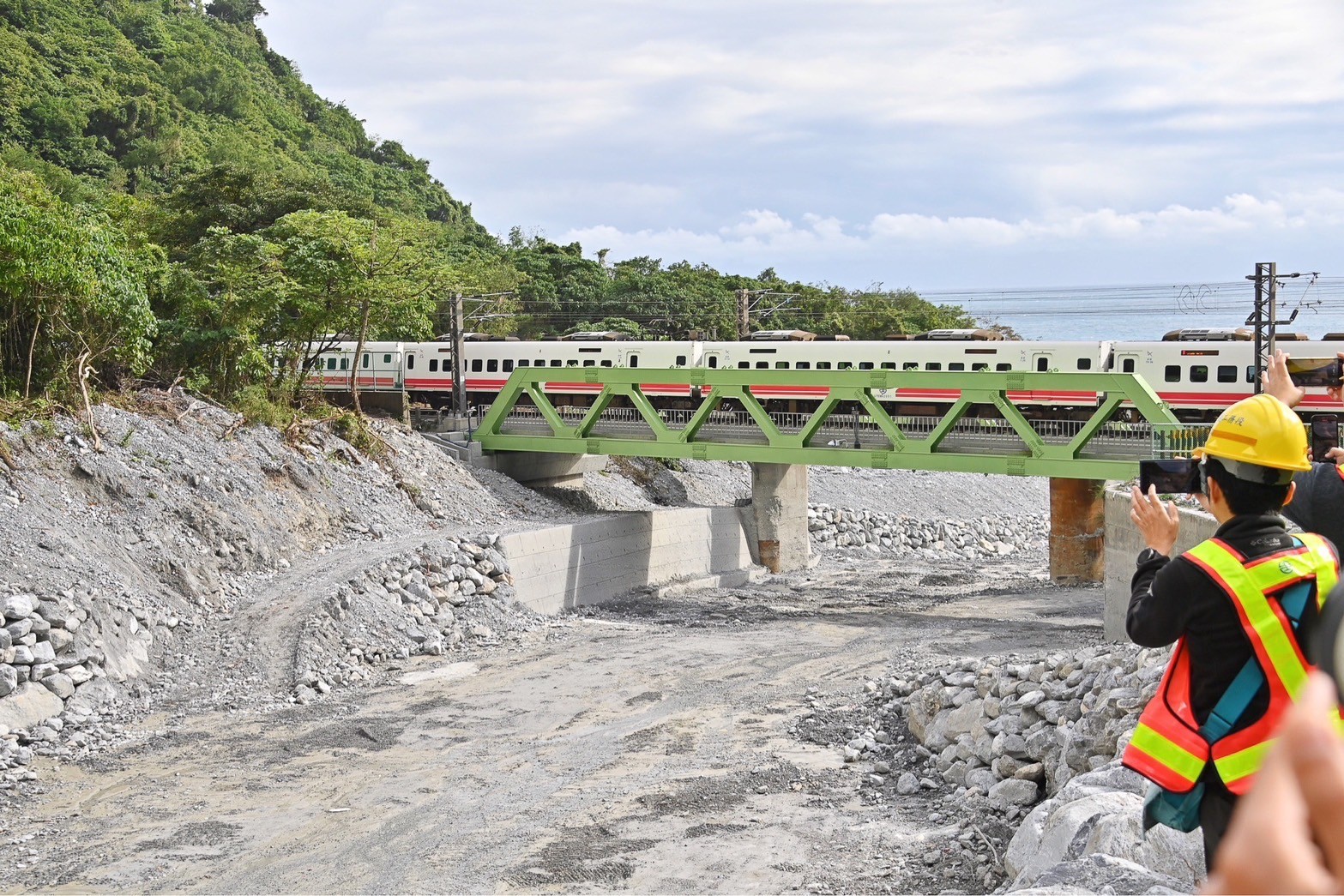 卓院長致詞時表示,凱米颱風來襲後,他於今年9月曾前來視察西小清水溪橋損毀情形,當時便指示工程團隊要儘快恢復雙線雙向通車,並提升整體橋梁與軌道的安全性;同時也要進行石公溪河床清淤的整治工程。卓院長感謝交通部、臺鐵公司、工程團隊及花蓮縣政府通力合作,在明(2025)年元旦前夕,提前達成雙線雙向通車的目標,為旅客帶來非常大的新年賀禮。