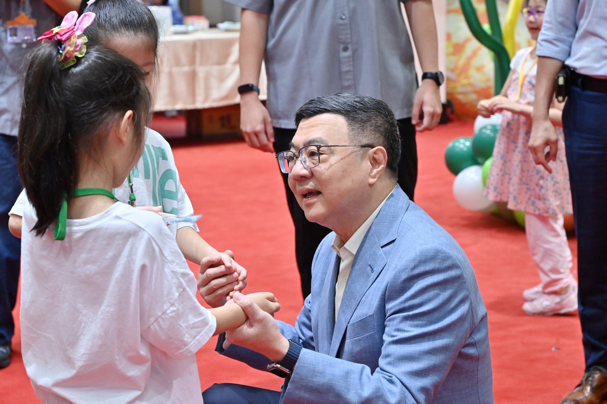 今天現場有許多不同年齡層的大小朋友,卓院長也趁機宣傳政府生育補助政策,讓大家知道政府為打造友善育兒環境、減輕育兒家庭負擔所做的努力,包括:小孩出生後,每月即享有育兒津貼;從今(2024)年1月起,0-2歲的公托補助每月提高到7,000元,準公托補助每月提高到13,000元;幼兒園自2017年迄今累計設置1,078班的2歲專班,預計今年至2026年將再增設200班;國民中小學、高中職學生學費全免;以及補助私立大學生一年3萬5千元的學雜費,至盼透過以上政策,一路從小孩出生,照顧到他們長大。