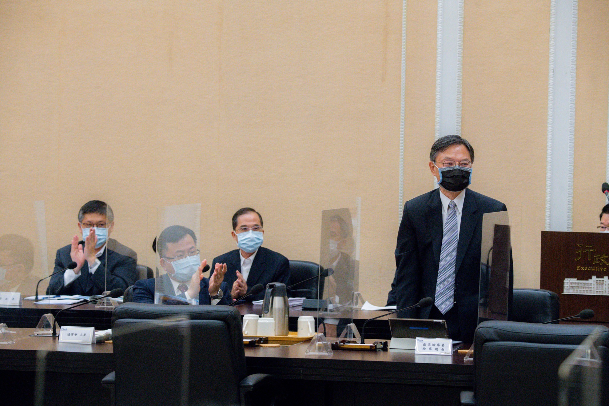 蘇院長最後表示,最高檢察署檢察總長江惠民4年任期即將屆滿,今天是他最後一次參加治安會報。院長在會中也感謝江檢察總長帶領檢察團隊,發揮檢察一體精神,維護治安、偵辦犯罪、肅貪查賄,尤其就平反冤案盡心盡力,為國家做事及為人民服務,實值肯定。