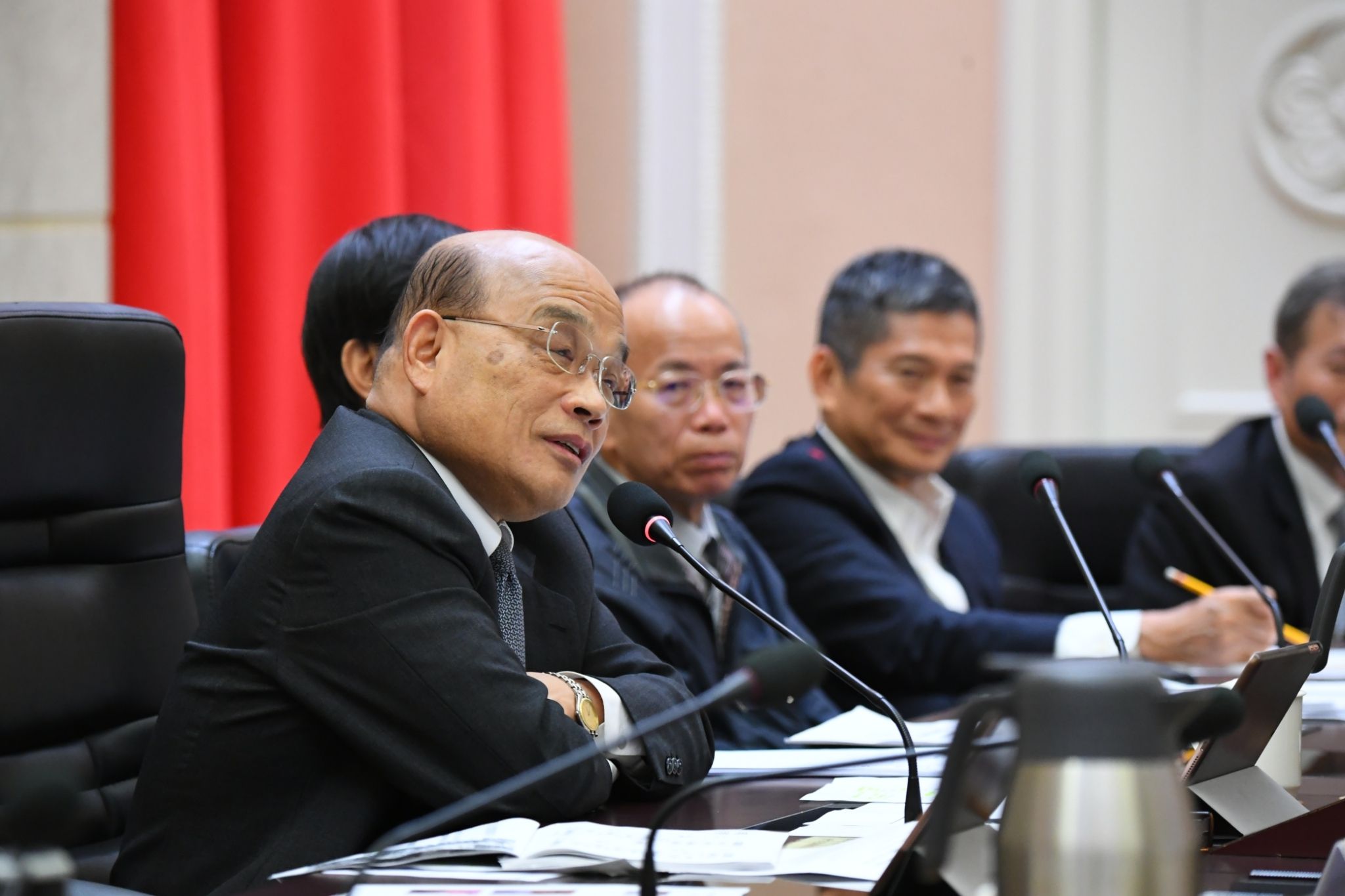 蘇院長感謝文化部李永得部長與相關藝術家、藝術界以及文化界的人士多方努力、交換意見,也感謝財政部蘇建榮部長的大力配合,蘇院長也提醒應注意以下三點:第一,推動文物或藝術品交易所得採分離課稅;二,稅制方面要照顧到方方面面,不是要大開方便之門,而是要把握機會,跟世界競爭、連通;三,執行藝術品拍賣事業的洗錢風險評估,確實掌握拍品資訊與交易實名制。
