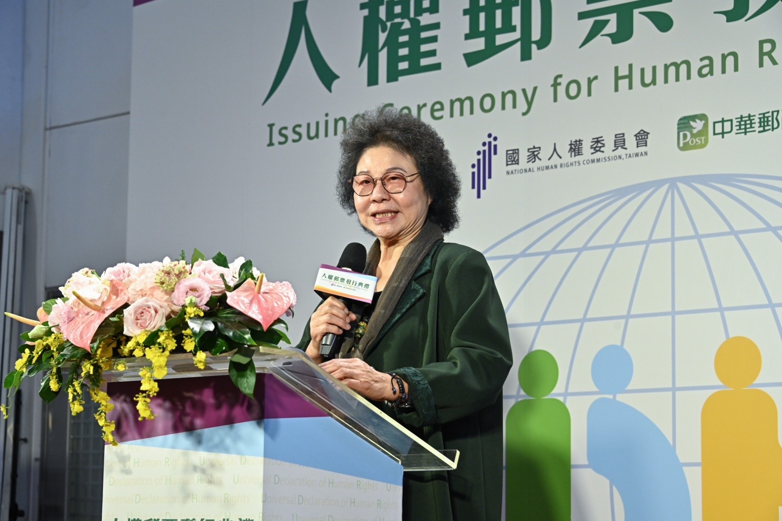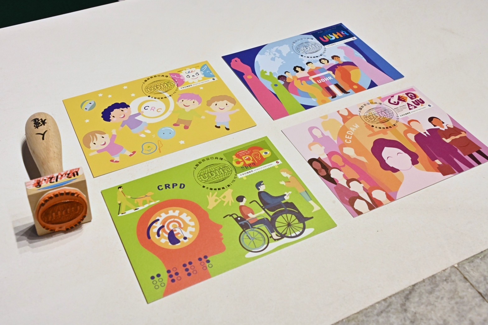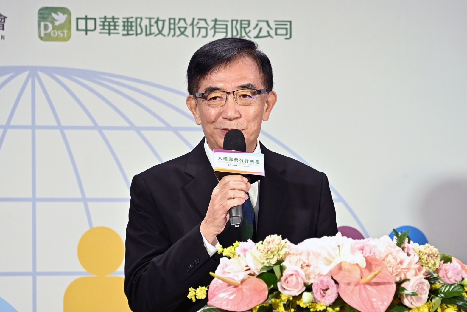 陳院長指出,他是一位集郵愛好者,從小在哥哥的帶領下,一同收集許多郵票,並從郵票的方寸之美中獲得許多豐富知識,認識不同國家的社會、經濟、文化及自然景觀風貌等。而今日發行的人權郵票共1套4枚,圖案以《世界人權宣言》及各公約英文簡稱為基礎來設計,他很榮幸受邀與大家一同見證這套意義深遠的郵票發行,也感謝國家人權委員會、交通部、中華郵政公司用心籌劃,讓更多民眾了解人權多元開放價值的重要性。