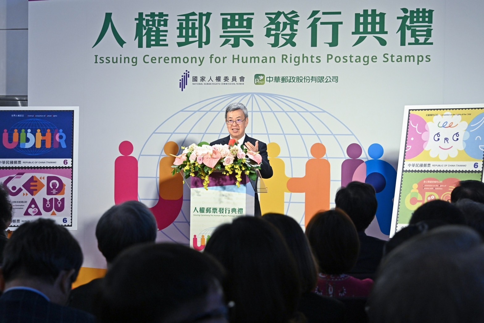 12月10日國際人權日即將到來,為表達我國對人權保障的高度重視,行政院長陳建仁今(8)日特別出席國家人權委員會與中華郵政公司共同舉辦的「人權郵票」發行典禮。院長表示,人權是普世價值,也是自由民主國家的核心價值,感謝中華郵政公司在國際人權日前夕發行這套意義深遠的郵票,在政府和各界努力之下,聯合國9大人權公約中的6部已有國內法效力、其中5部以國內法化完成;行政院更於2022年5月5日提出我國首部「國家人權行動計畫」(111-113年),期盼藉由跨院、跨部會、跨公約的協調整合與資源妥適分配,落實基本人權的保障。