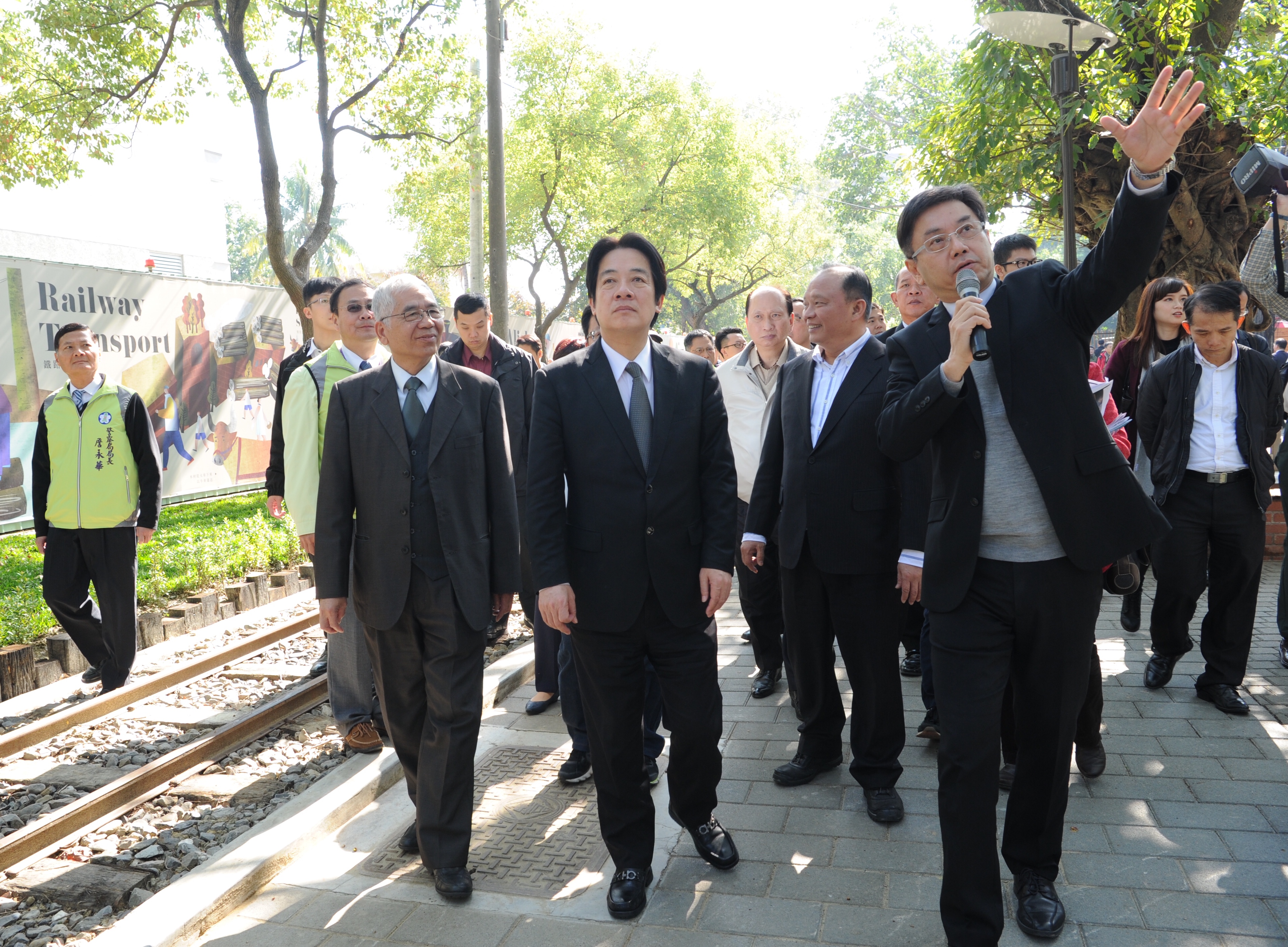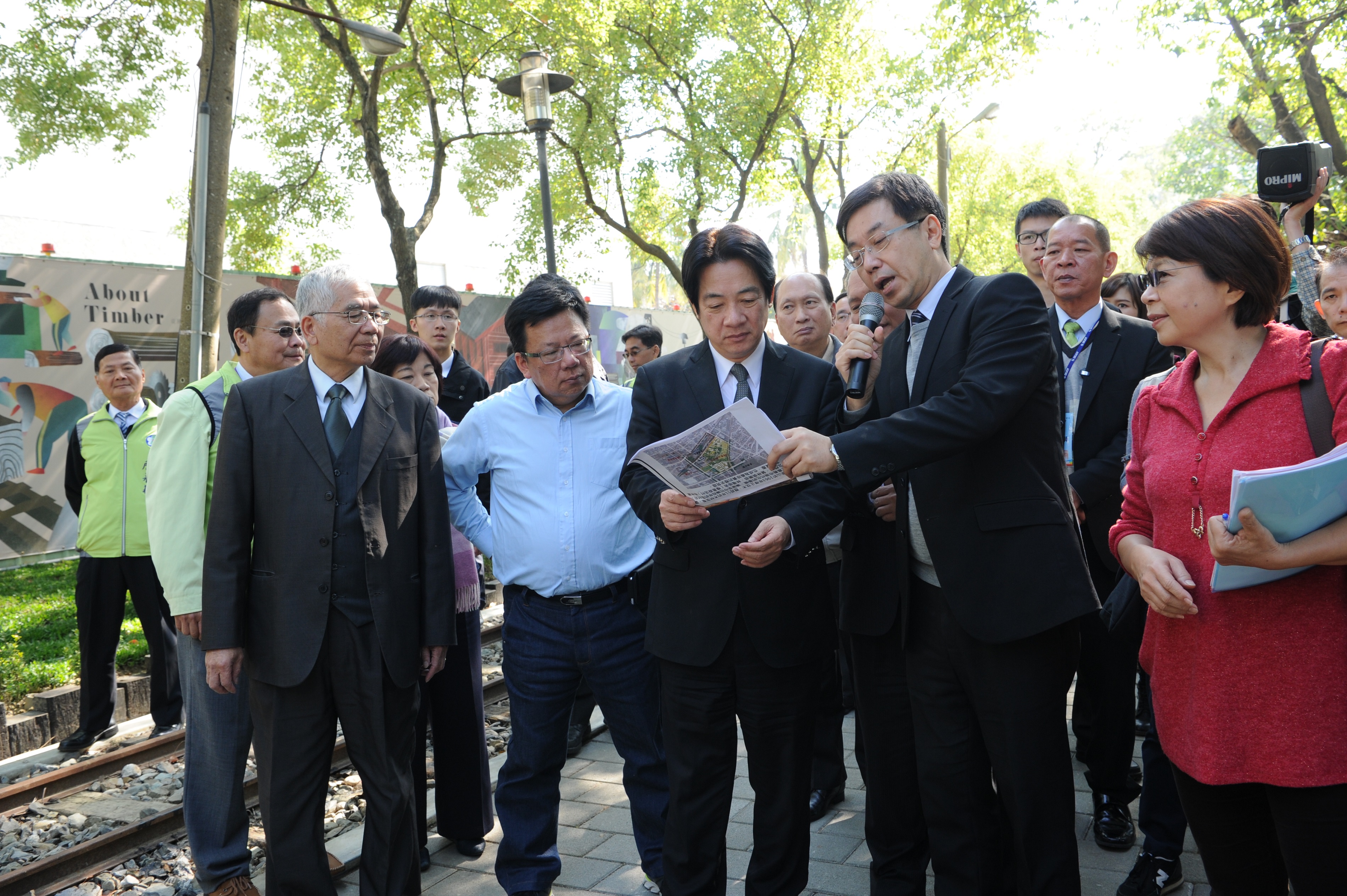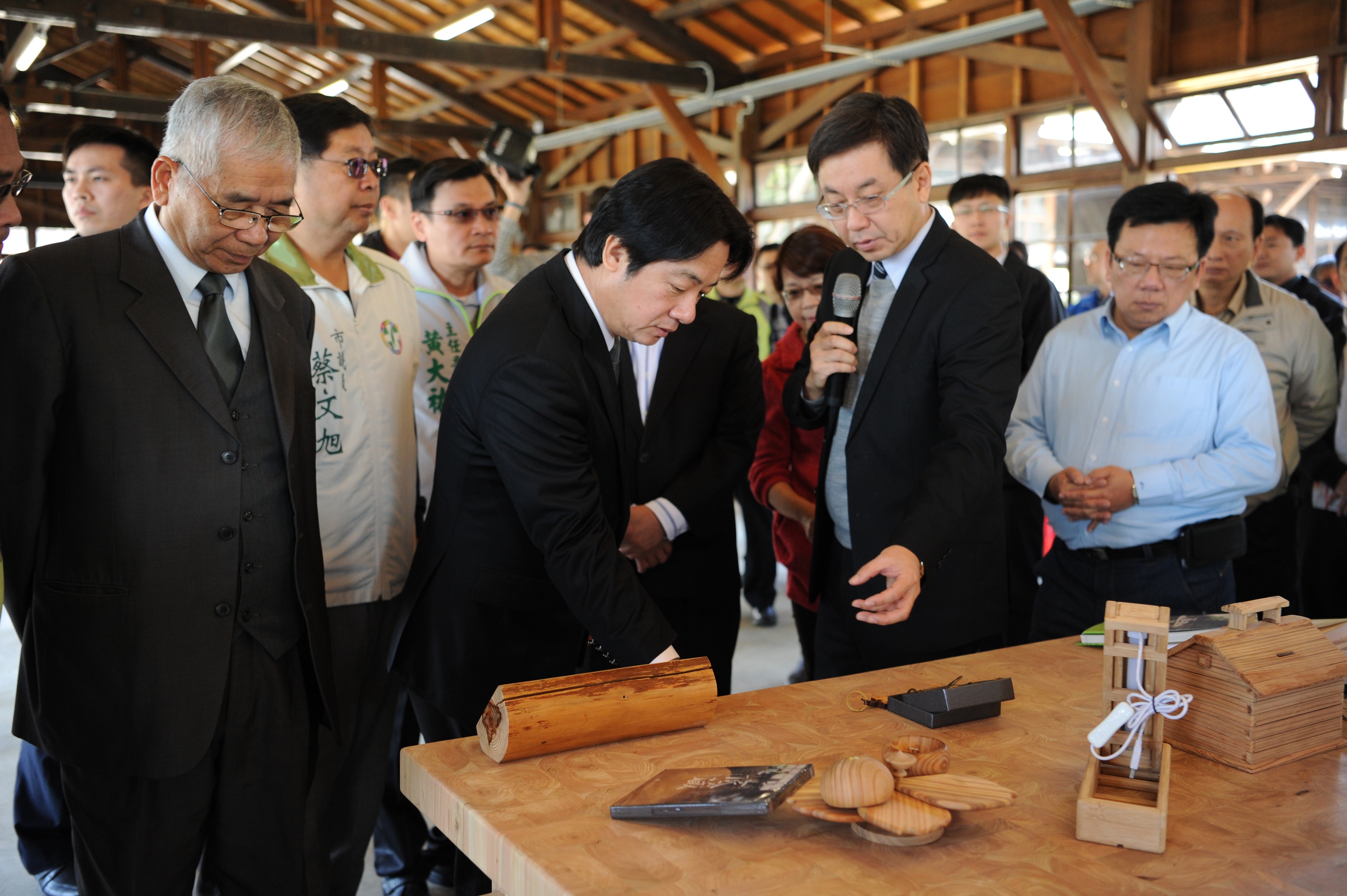 隨後,賴院長視察「阿里山林業村-活化利用規劃辦理情形」時表示,嘉義市提出「林業鐵道文化黃金觀光廊道建置計畫」,讓森林小火車結合阿里山與林業村,請農委會與國發會支持該計畫。也希望中央、地方合力完成三項目標:第一,保存文化資產,修復及保存的工作,相關單位責無旁貸。第二,藉由建置文化園區,改善都市景觀及提升民眾生活空間,讓嘉義市民感到光榮。