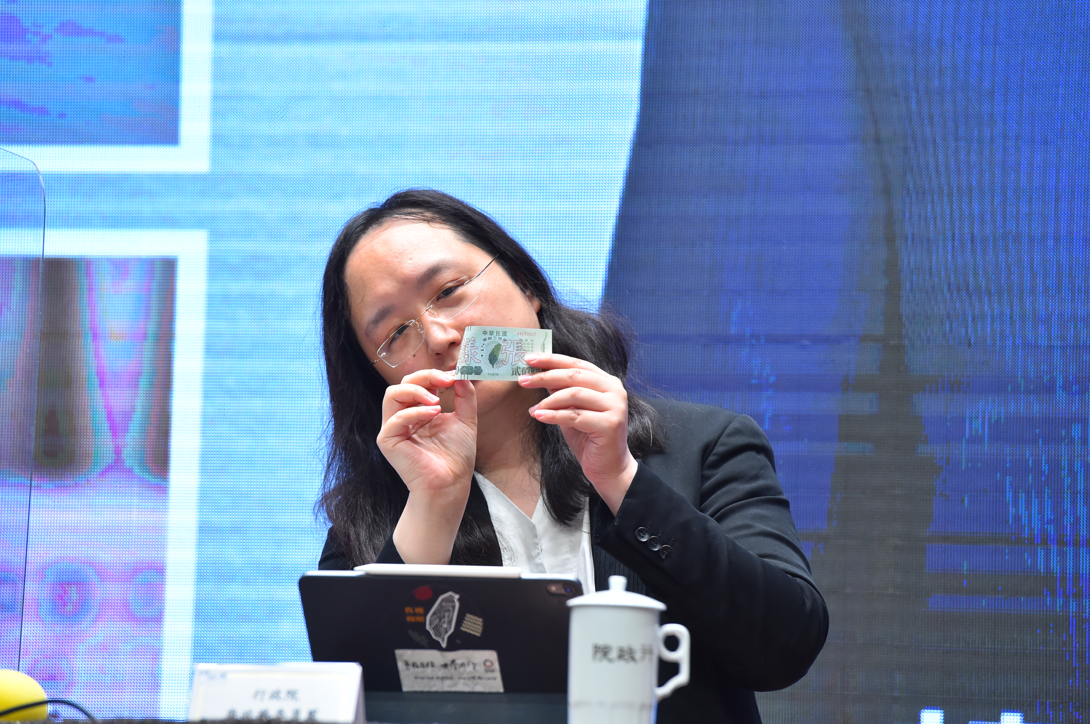 為讓民眾更瞭解即將上路的振興三倍券,達成「好領、好用、好刺激、最溫暖」的目標,行政院副院長沈榮津偕同政務委員唐鳳、發言人丁怡銘及經濟部長王美花今(29)日在行政院舉行「三倍券網站教學」記者會。丁怡銘發言人表示,希望讓民眾更瞭解三倍券領取方式,國人共同參與振興經濟的盛事。