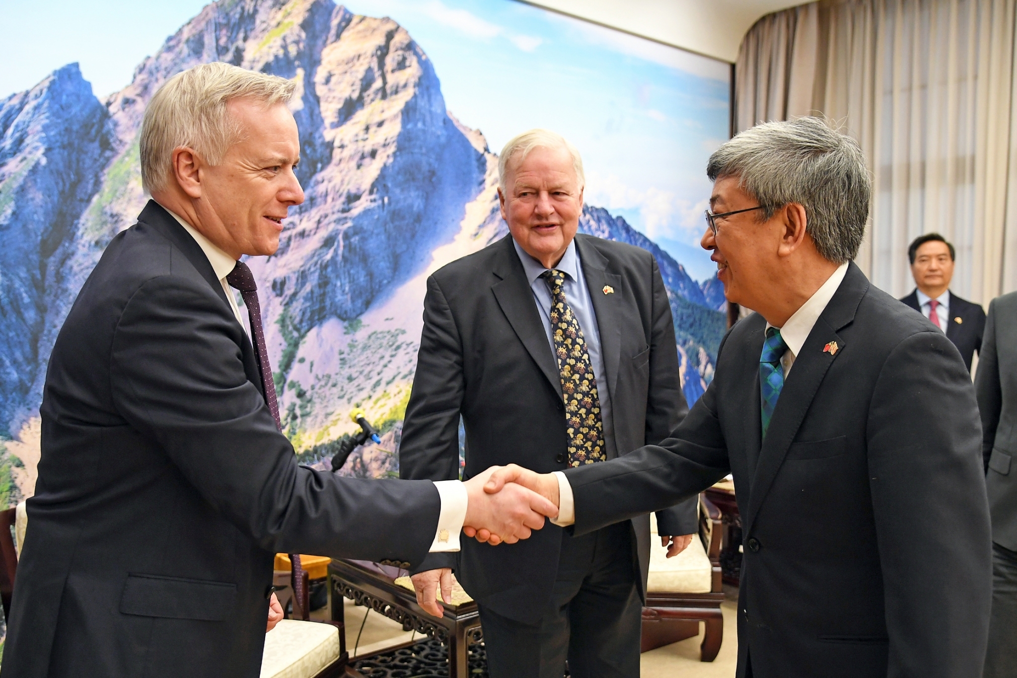 行政院長陳建仁今(22)日接見「台英國會小組」訪問團時表示,感謝該小組多年來,堅定支持臺灣有意義參與國際組織,並重視加強臺英雙邊關係,尤其臺英之間的緊密夥伴關係對於維護區域和平與穩定至關重要,雙方已在經貿、能源及文化等多項領域展開合作,至盼透過訪團此次來訪,能夠持續促進雙方友好關係及交流。