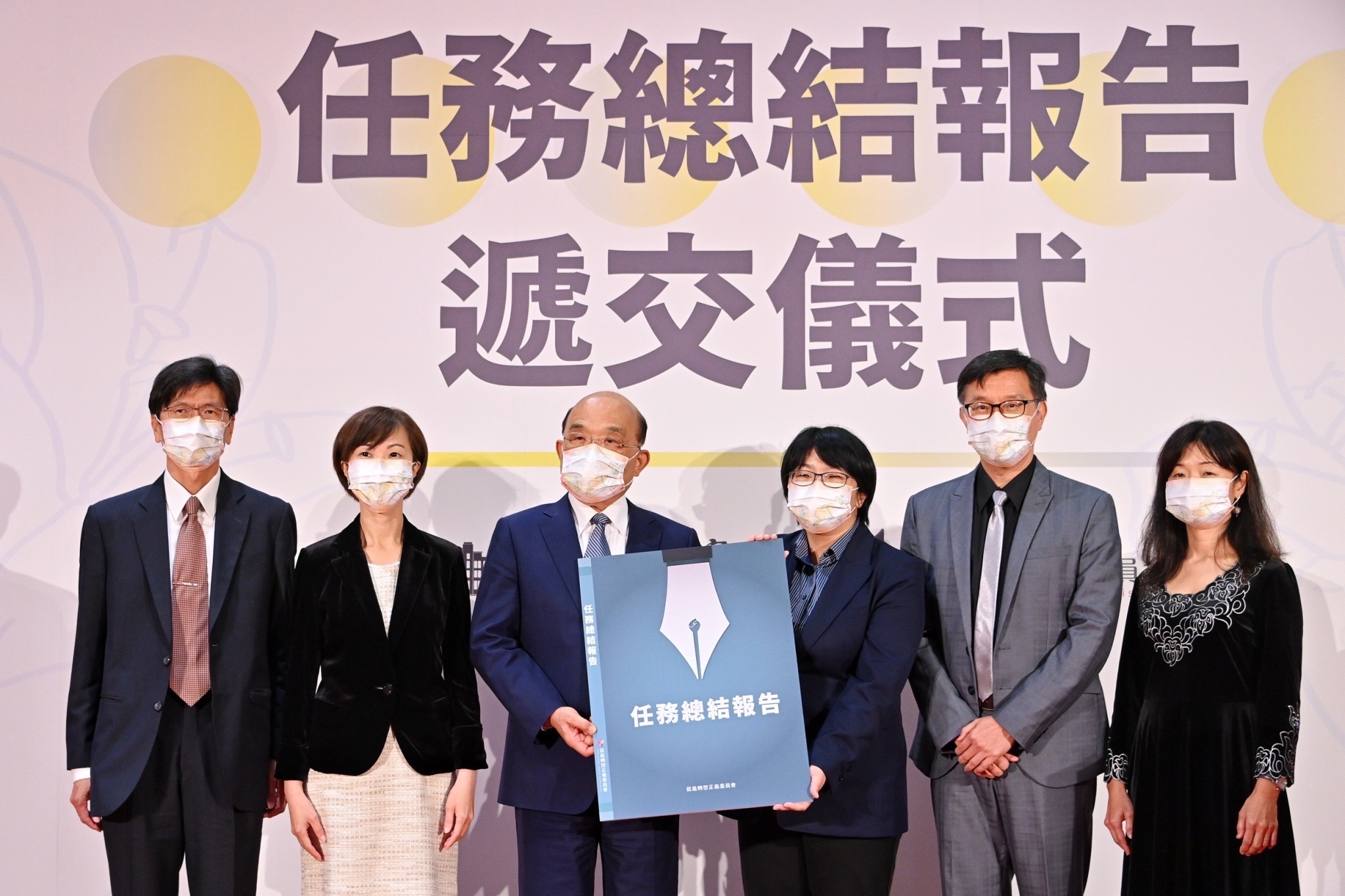 蘇院長指出,臺灣解嚴已35年,臺灣人從威權走到民主是何等不易,期間歷經多少血淚及不幸,今天能在國家最高行政機關舉辦任務總結報告的遞交儀式,在看似平靜的背後,其實經歷無數波濤洶湧和坎坷迂迴,但臺灣人終究是走到這一步。臺灣人用一票一票付託給蔡英文總統,而蔡總統上任以來,非常重視轉型正義,從立法到促轉會成立,這4年多來,即便推動的速度仍不夠快,但也展現十足的誠意和努力。