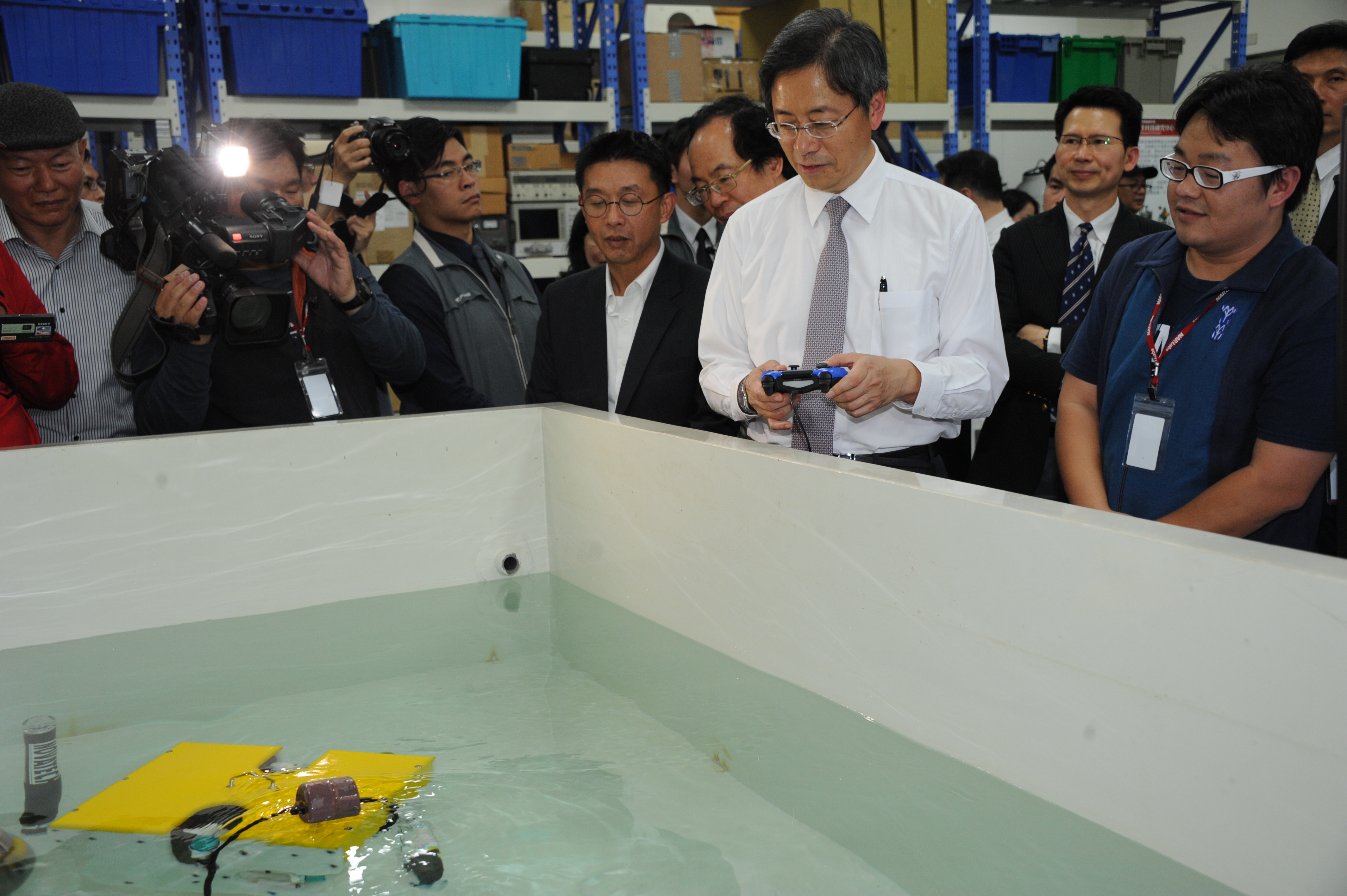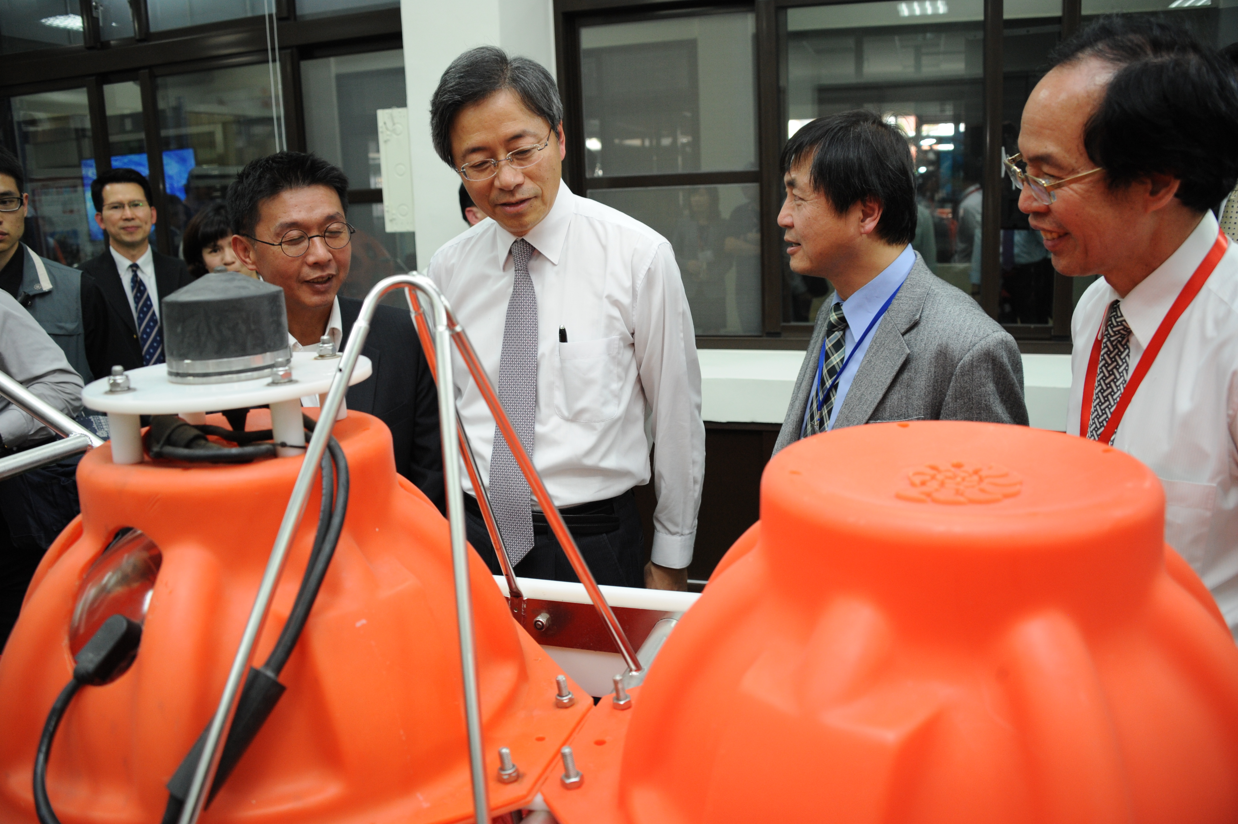 今天張院長除聽取海洋中心簡報外,也參觀實驗室及成果展。