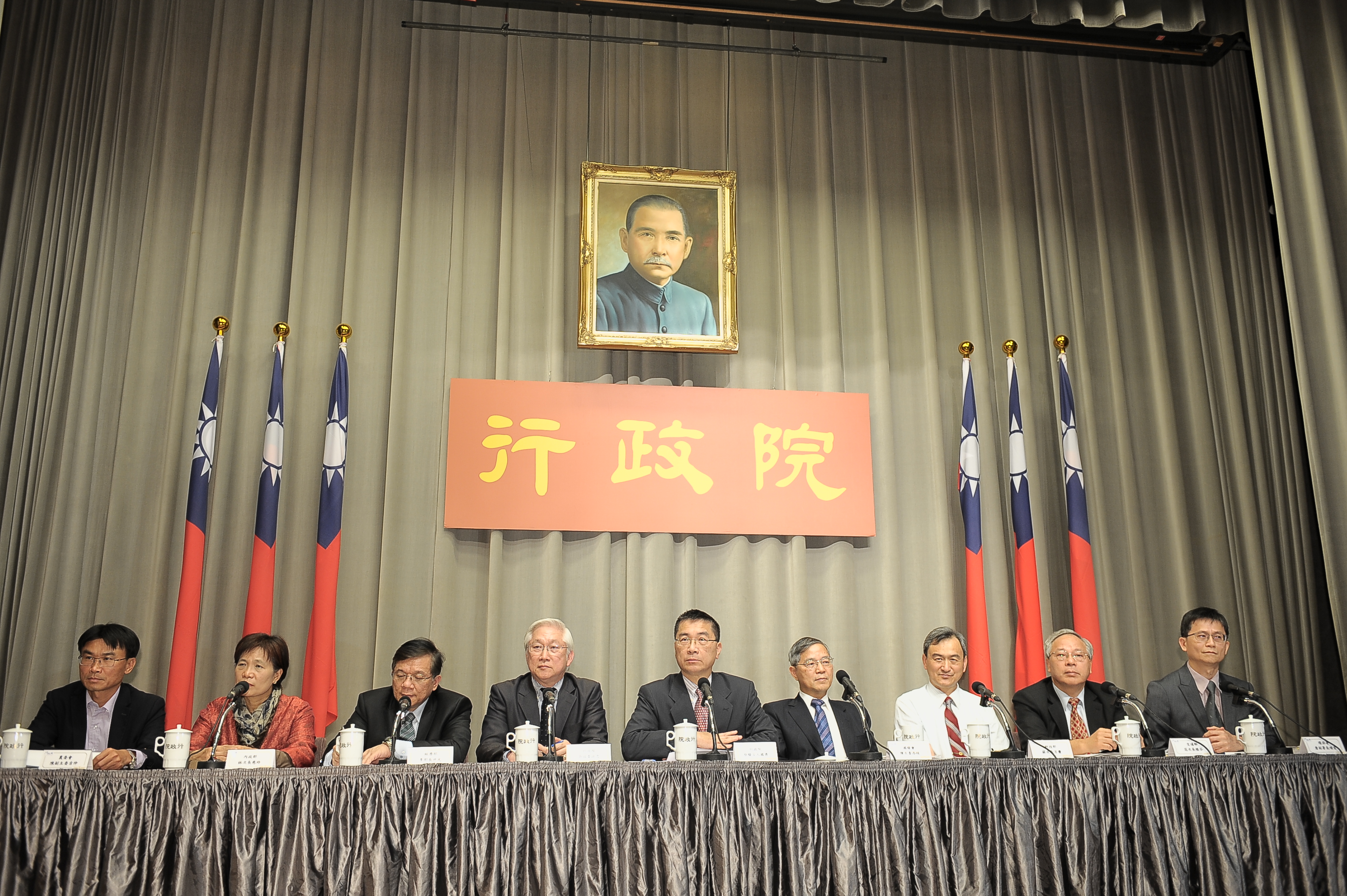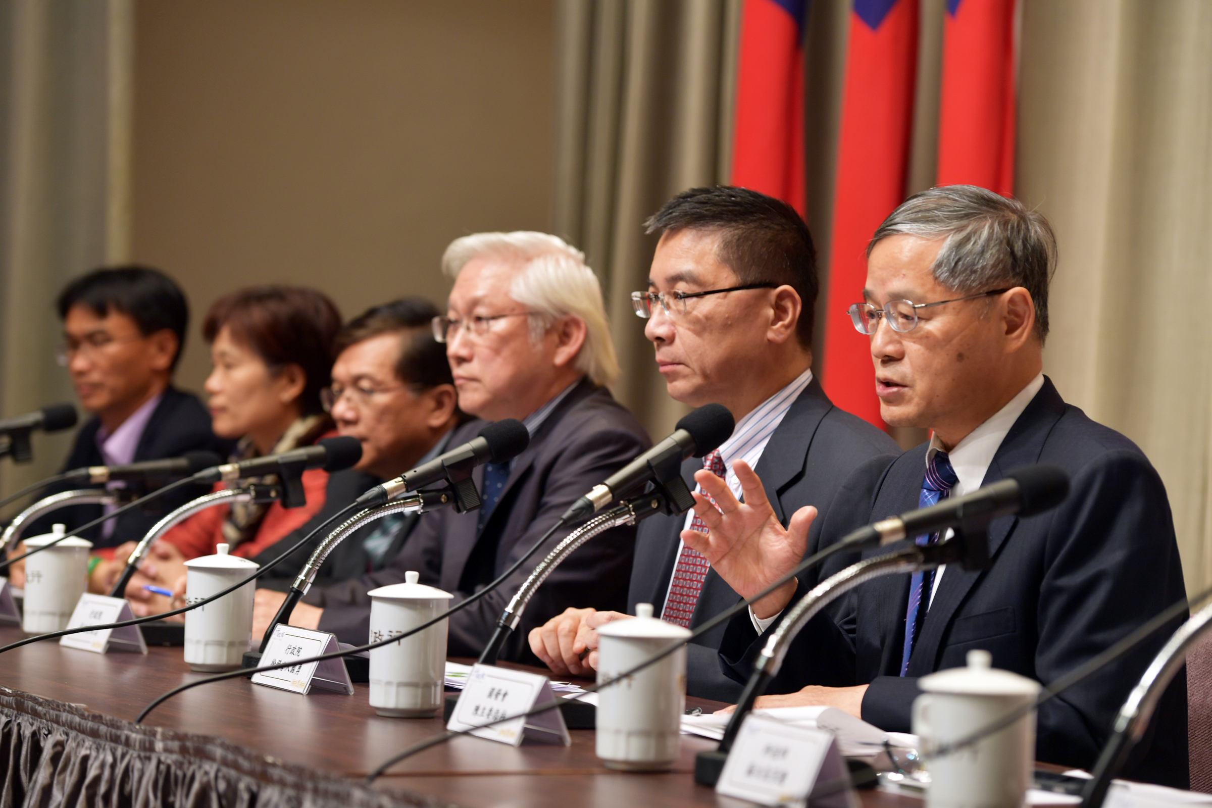 今天記者會由行政院發言人徐國勇主持,出席的首長有政務委員吳政忠、國發會主委陳添枝、經濟部長李世光、科技部次長蘇芳慶、內政部次長林慈玲、交通部次長范植谷、農委會副主委陳吉仲及環保署副署長詹順貴。