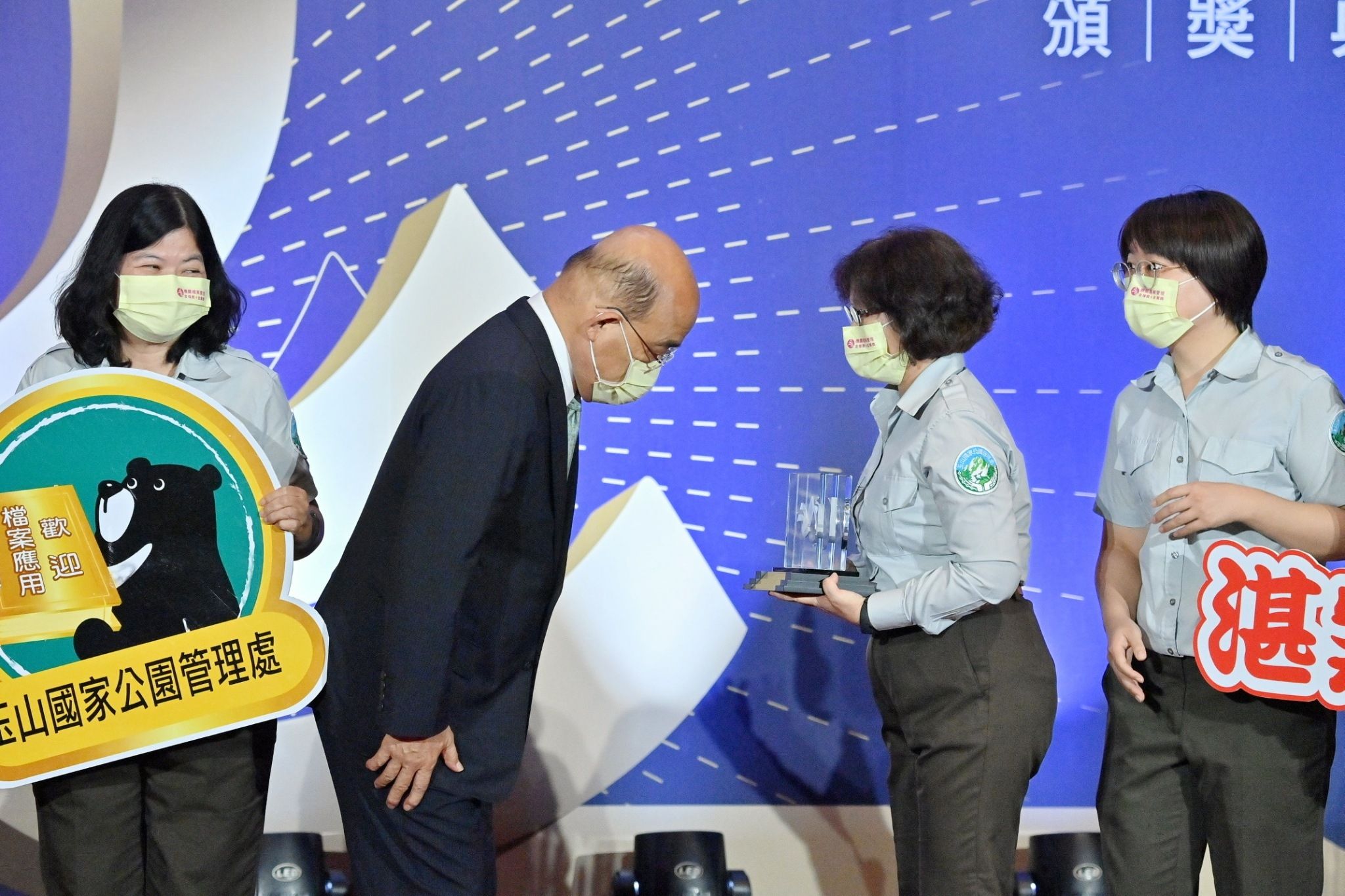 行政院長蘇貞昌今(5)日出席「第19屆機關檔案管理金檔獎暨金質獎頒獎典禮」,親自頒獎表揚獲獎機關及同仁,肯定他們致力於政府機關檔案管理工作的付出與努力。蘇院長表示,政府機關檔案不但記錄國家發展軌跡,也為政府施政留下珍貴的紀錄,他非常重視政府機關檔案的管理,因此已連續3屆出席頒獎活動,至盼國家發展委員會檔案管理局妥善保存這些彌足珍貴的國家檔案,並持續活化運用,同時也希望所有同仁皆能以此次受獎機關及同仁的績優事蹟為典範,繼續堅守崗位。