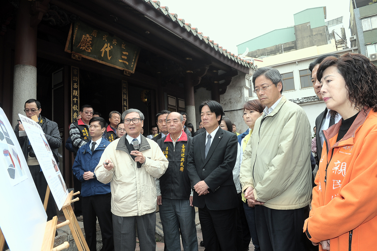 關切0206震災造成臺南市多處文化資產災損,行政院長張善政今(27)日前往臺南視察「祀典武廟」與「風神廟」受損情形時表示,無論是需要優先處理的結構性修復,或需較長作業時間的細緻性修復,都需大家共同努力,希望能趁機補強並恢復地震前原本的樣貌。維修經費方面,無論是市定古蹟或是國定古蹟,中央都會予以支持。