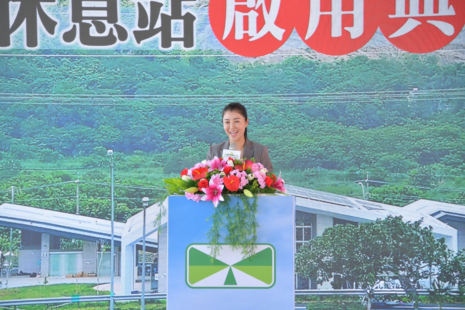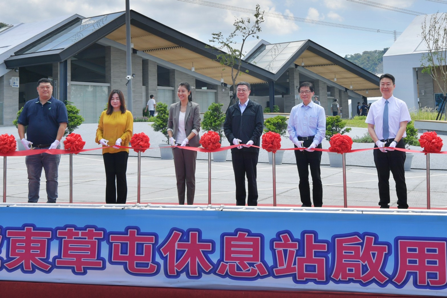 卓院長表示,東草屯休息站今日啟用後,行經該休息站的民眾不僅可以在賣場享受許多美食、購買地方特色產品,還可欣賞附近豐富多元的自然生態,同時停車場也設置充電樁,讓電動車可以快速充電,提供舒適便利的服務,體現「進步思想、文明建設、漂亮建築」的理念。