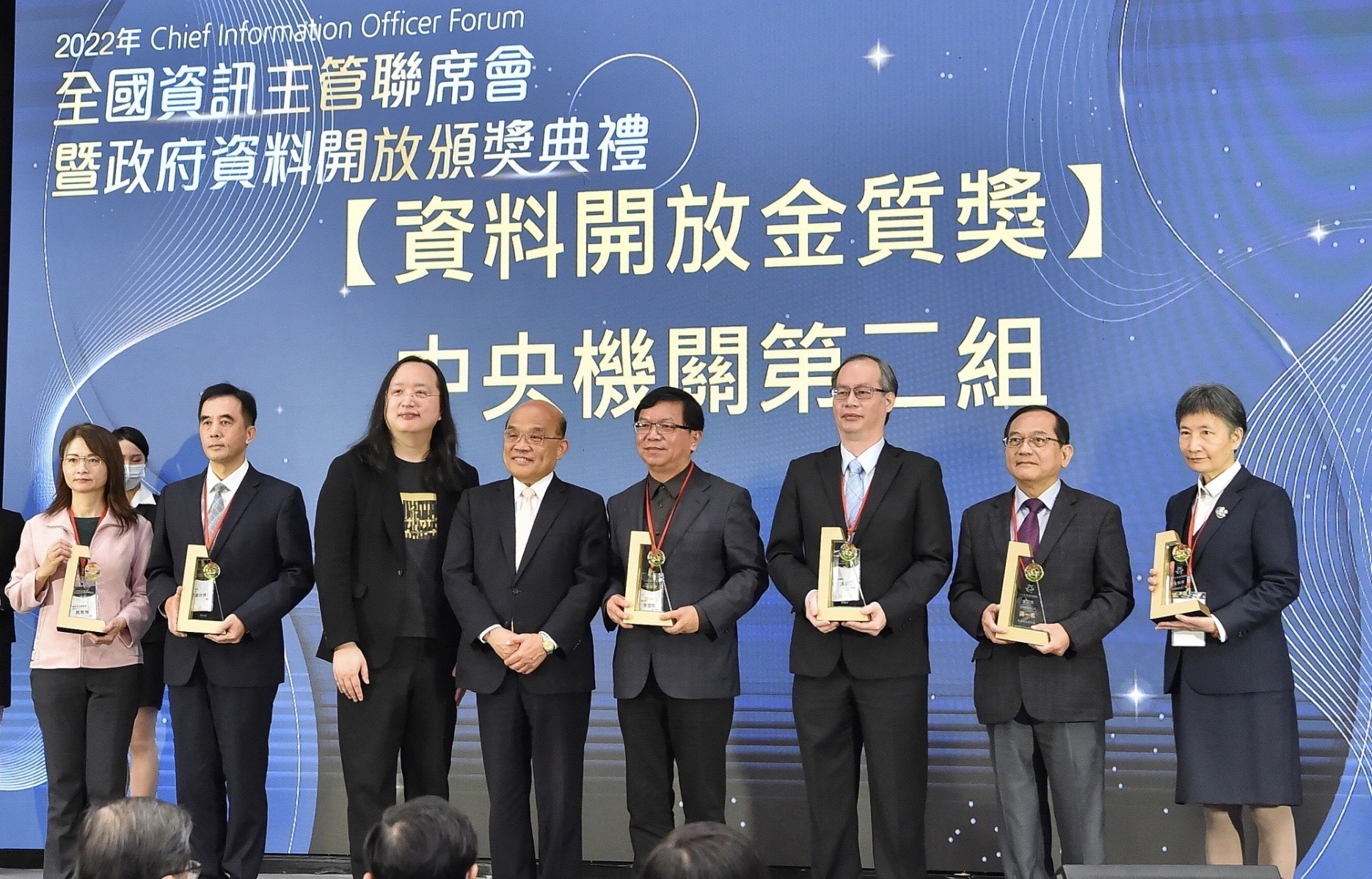行政院長蘇貞昌今(9)日出席「2022年全國資訊主管聯席會暨政府資料開放頒獎典禮」時表示,數位發展部於今(2022)年8月成立後,持續強化中央與地方橫向聯繫,不斷提升臺灣數位力量,並首度舉辦本次活動,而今年9月公布的臺灣數位競爭力排名,臺灣也名列世界前茅,希望各領域的夥伴們能以此次獲獎單位為典範,相互觀摩學習,讓整體工作做得更好。同時,相關部會在推動「開放政府」相關工作時,亦應嚴防極權專制國家、境外敵對勢力利用臺灣對外開放及包容性的特點進行入侵,以免影響民心士氣、社會安定及國家安全。