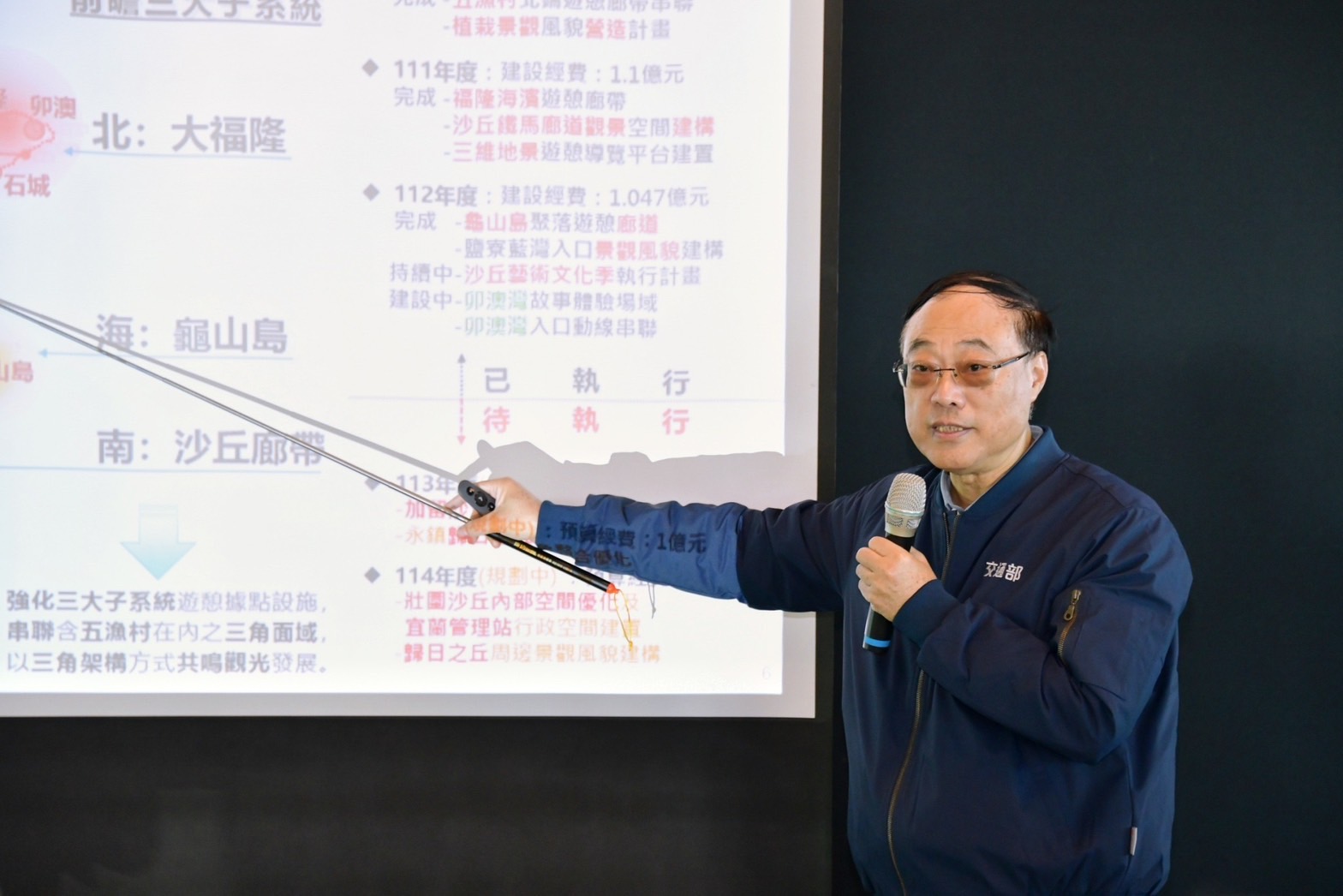 陳院長表示,除了壯圍地區沙丘景觀享譽盛名外,宜蘭縣還有養鴨研究中心(現為農業部畜產試驗所東區分所)、蘭花園、威士忌酒廠等知名景點,相信在中央與地方政府持續攜手合作下,定能打造宜蘭成為最好的觀光勝地。