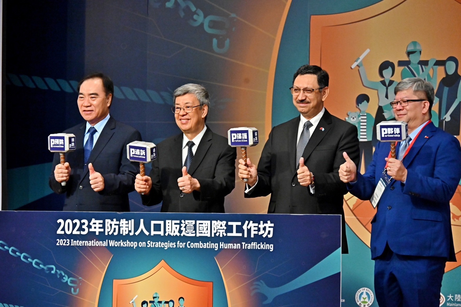 行政院長陳建仁今(6)日出席「2023年防制人口販運國際工作坊」開幕式時表示,疫後新興犯罪猖獗,行政院已整合政府與各界資源推動「新世代打擊詐欺策略行動綱領1.5版」、「漁業與人權行動計畫1.5版」等,落實執行面、規範面及預防面的各項措施,建構堅韌打擊犯罪系統。此外,為持續支持被害人、嚴懲加害人,各國、各界仍應團結一致,建立並加強合作網絡,透過跨國、跨領域、跨公私部門的緊密合作,徹底防制人口販運,至盼透過這2天研討會的交流,創造更多跨域合作的可能性。