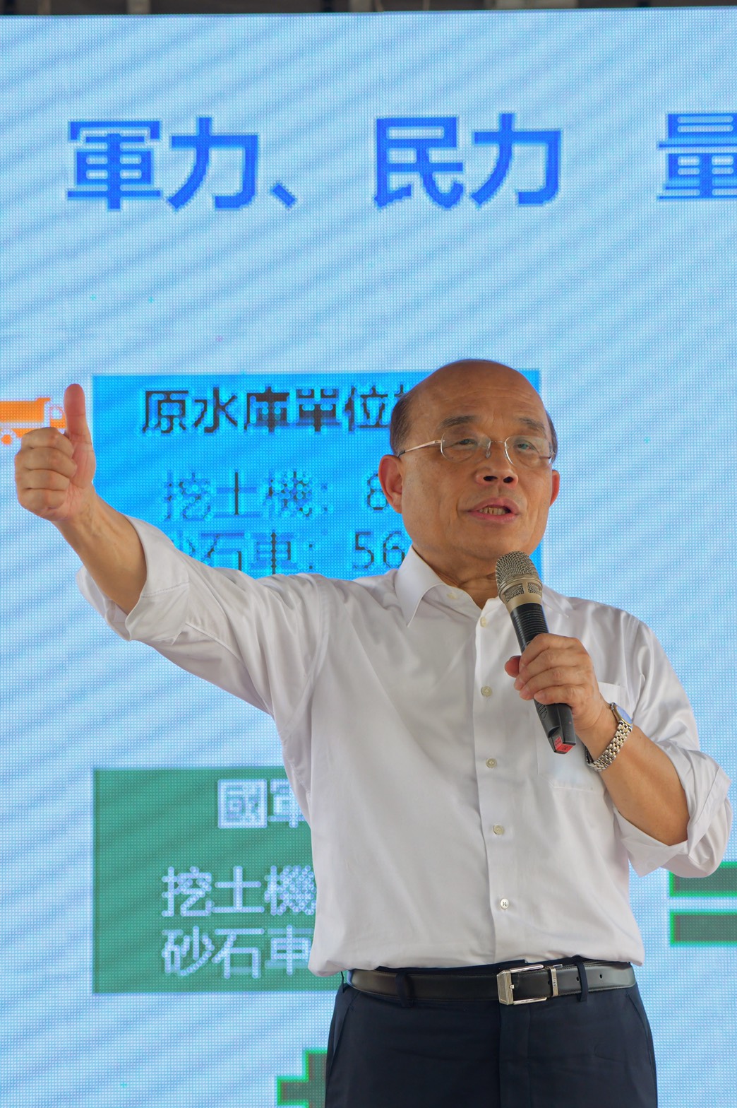 蘇院長說,他除了感謝「為水辛苦、為水忙」的水利署所有同仁;另外,在蔡英文總統命令下,國軍官兵特別利用缺水乾旱的時候,協助清水庫、清淤泥,擴大水庫的容量,化危機為轉機。此外,院長也感謝科技及水利專家提供協助,為極端型氣候超前部署。