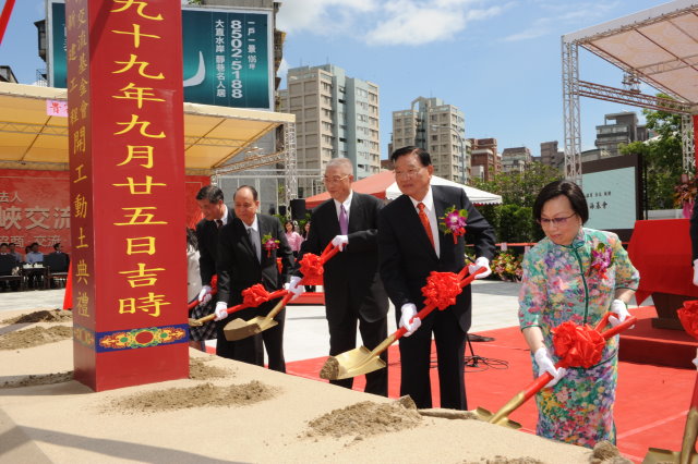 吳院長今(25)日出席財團法人海峽交流基金會興建辦公大樓動土典禮時指出,海基會辦公大樓經由各方贊助共襄盛舉,未來大廈落成將可提供莊嚴方便的兩岸協商聯繫與舒適辦公空間,從空中俯視,辦公大樓為船的造型,象徵先民冒著風難到台灣的歷史,建造的設計圖形把天燈祝福兩岸發展的意義納入,而景觀上加入玉山、日月潭、阿里山等對台灣具高度意義的設計,期待工程能順利完成。